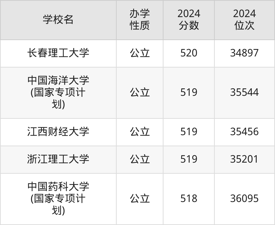 | 中国药科大学 (国家专项计 划) | 518 | 36095 |