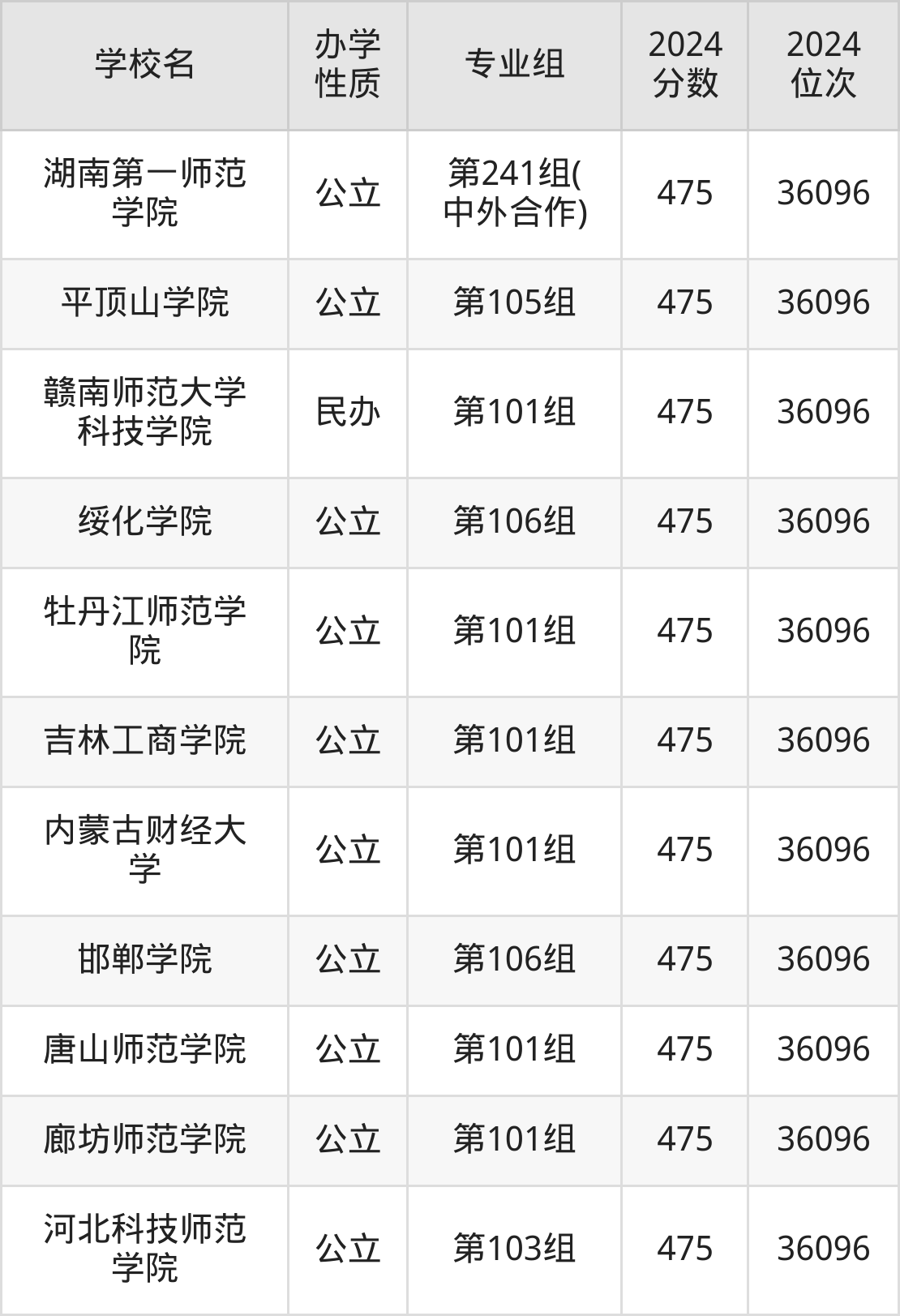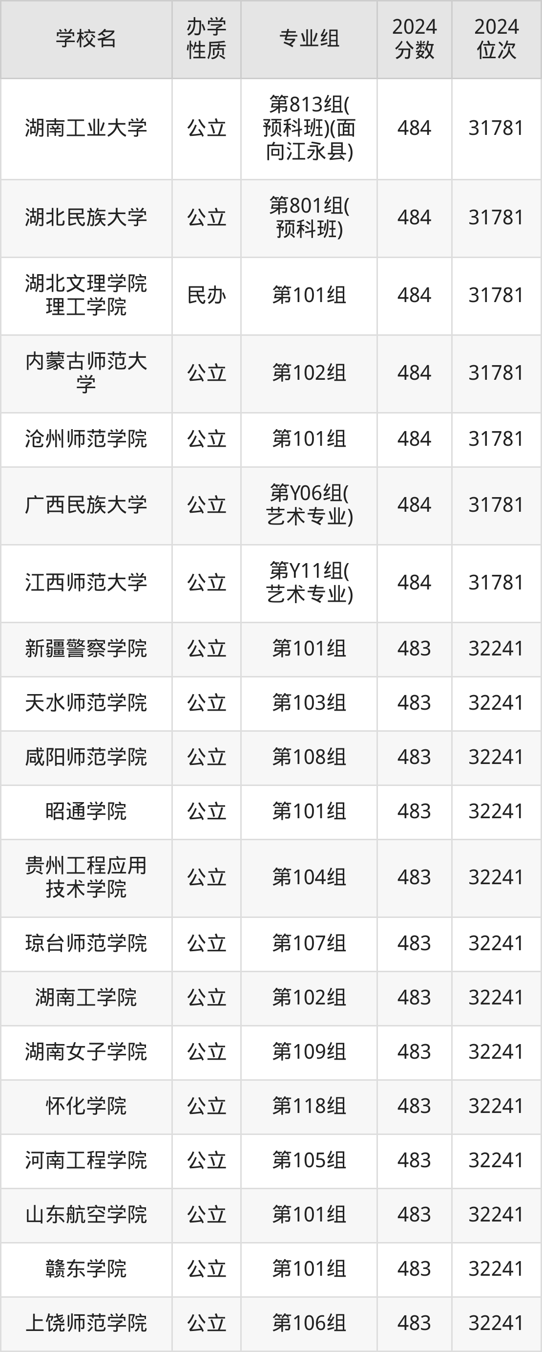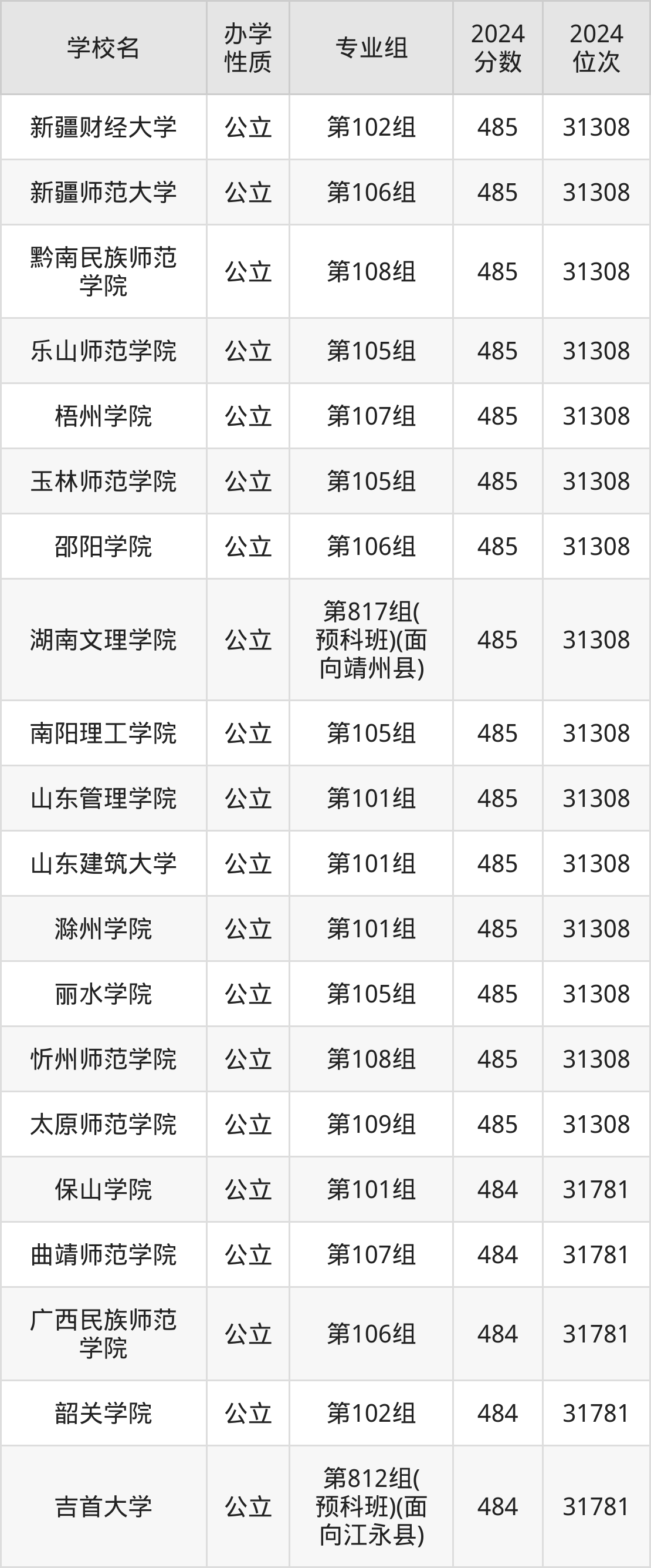 2024年湖南历史类480分考生能上新疆财经大学、新疆师范大学、黔南民族师范学院、乐山师范学院、梧州学院等171所二本院校,具体录取分数线及位次为: