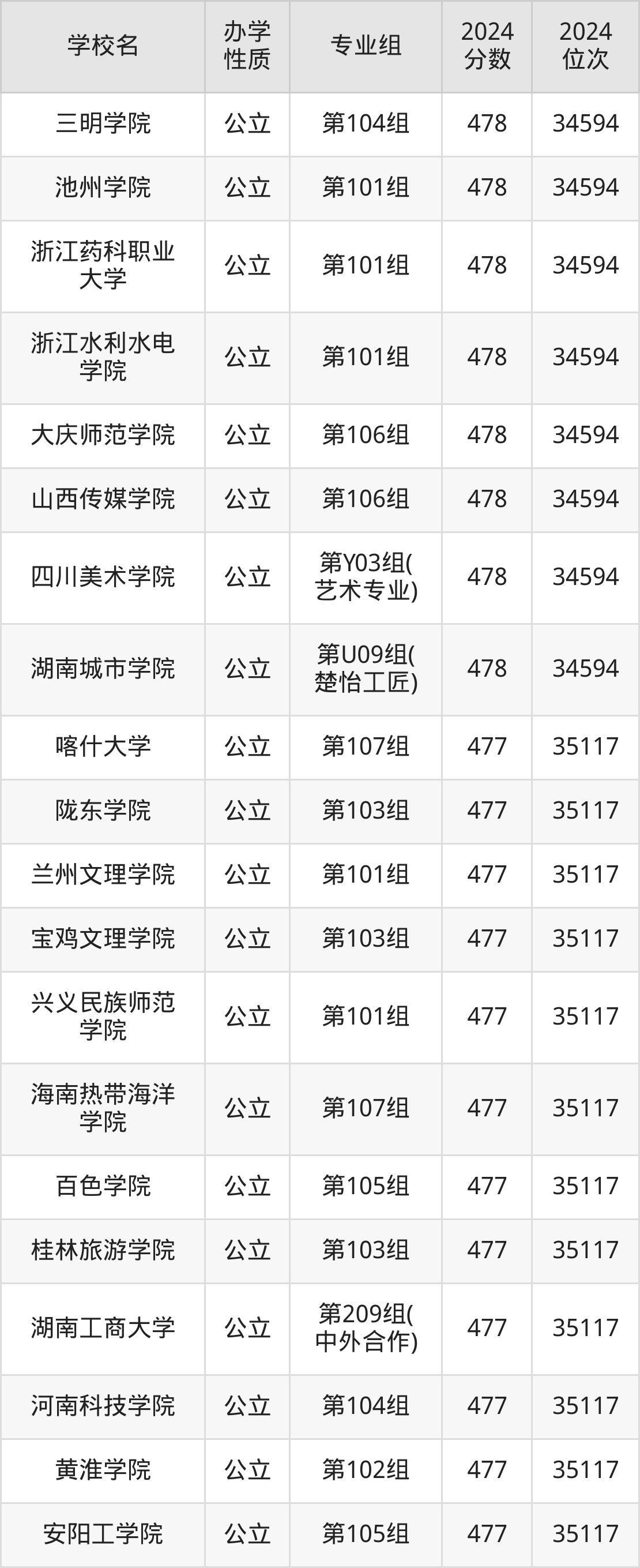 | 湖南文理学院 | 第844组( 预科班)(面 向通道县) | 477 | 116805 |
