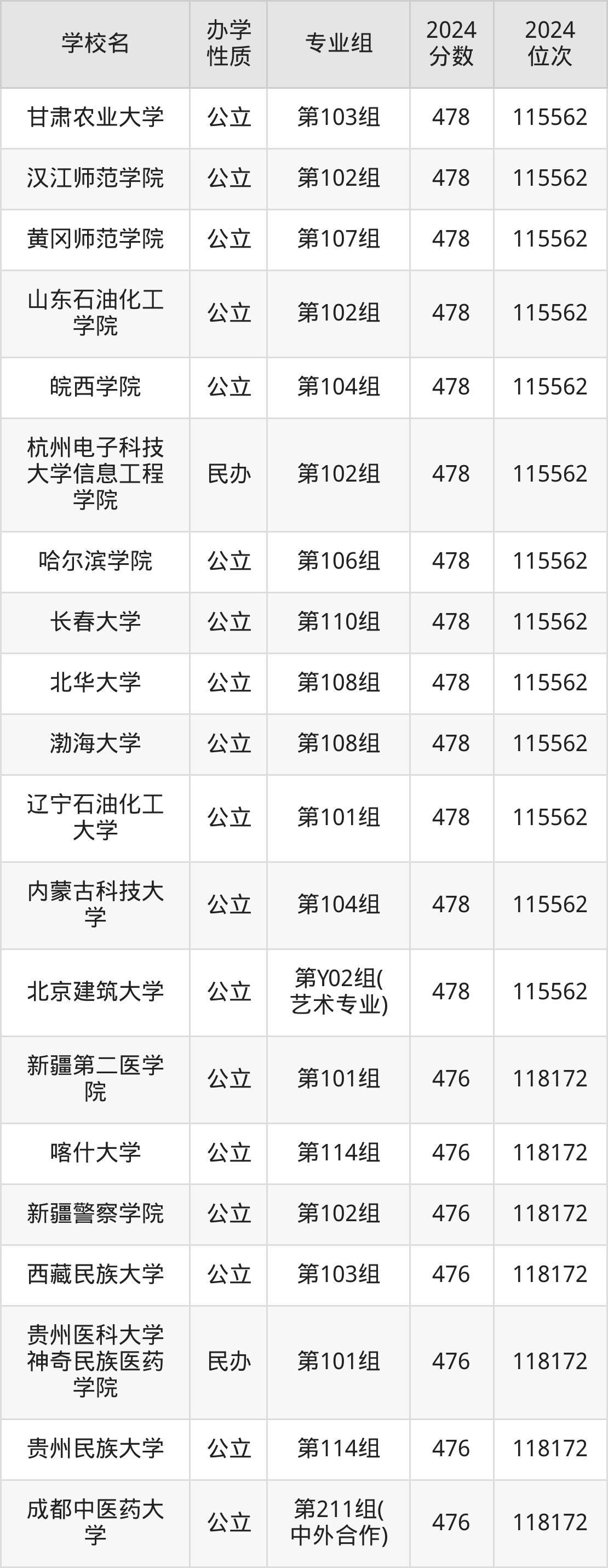 | 吉林农业大学 | 第309组( 国家专项) | 478 | 115562 |