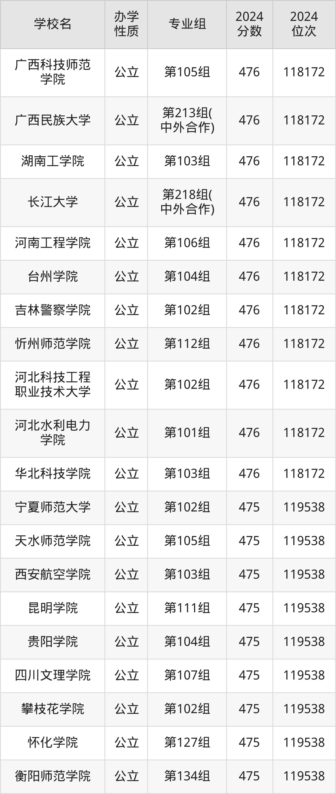 | 广西民族大学 | 第Y12组( 艺术专业) | 476 | 118172 |