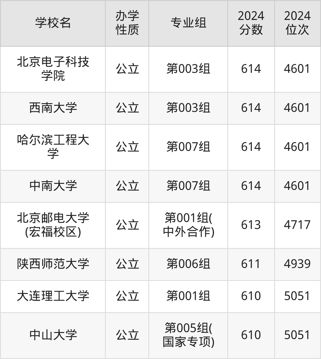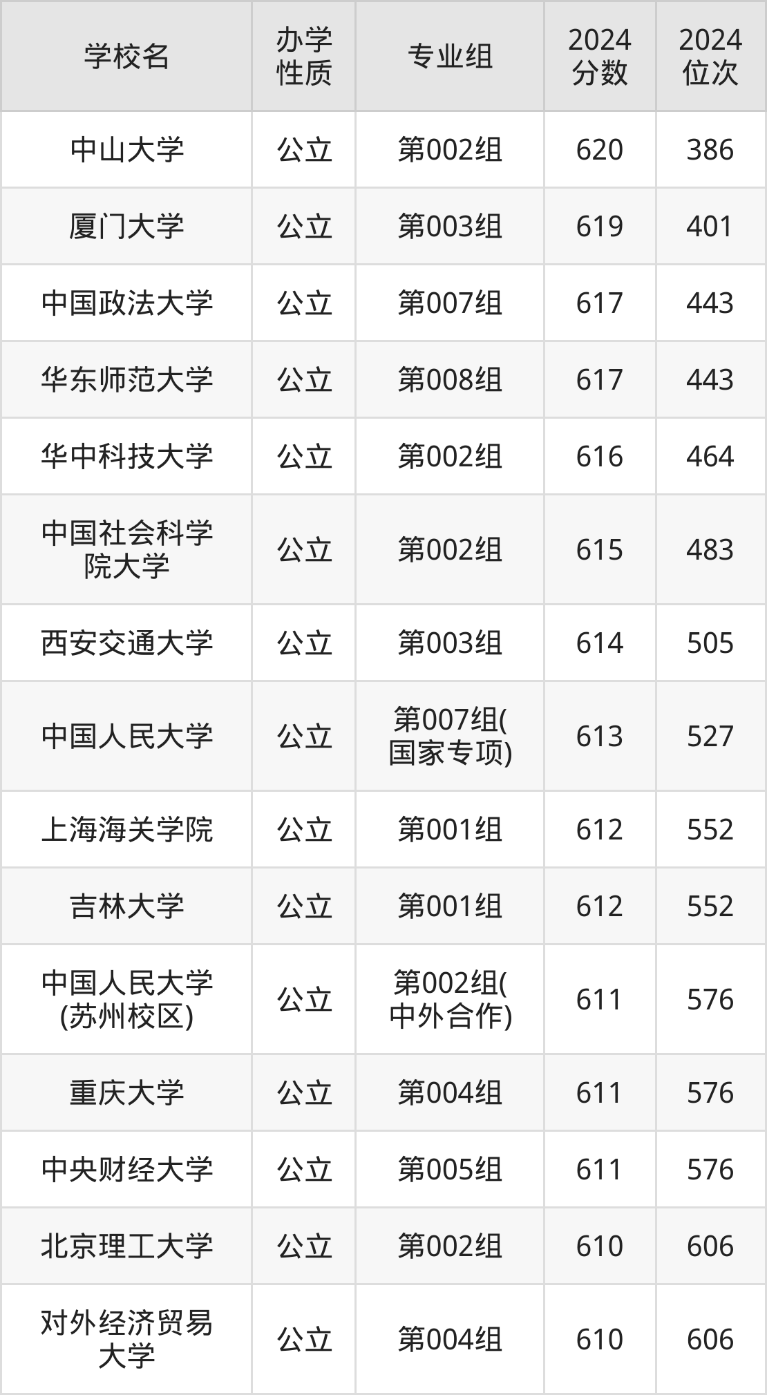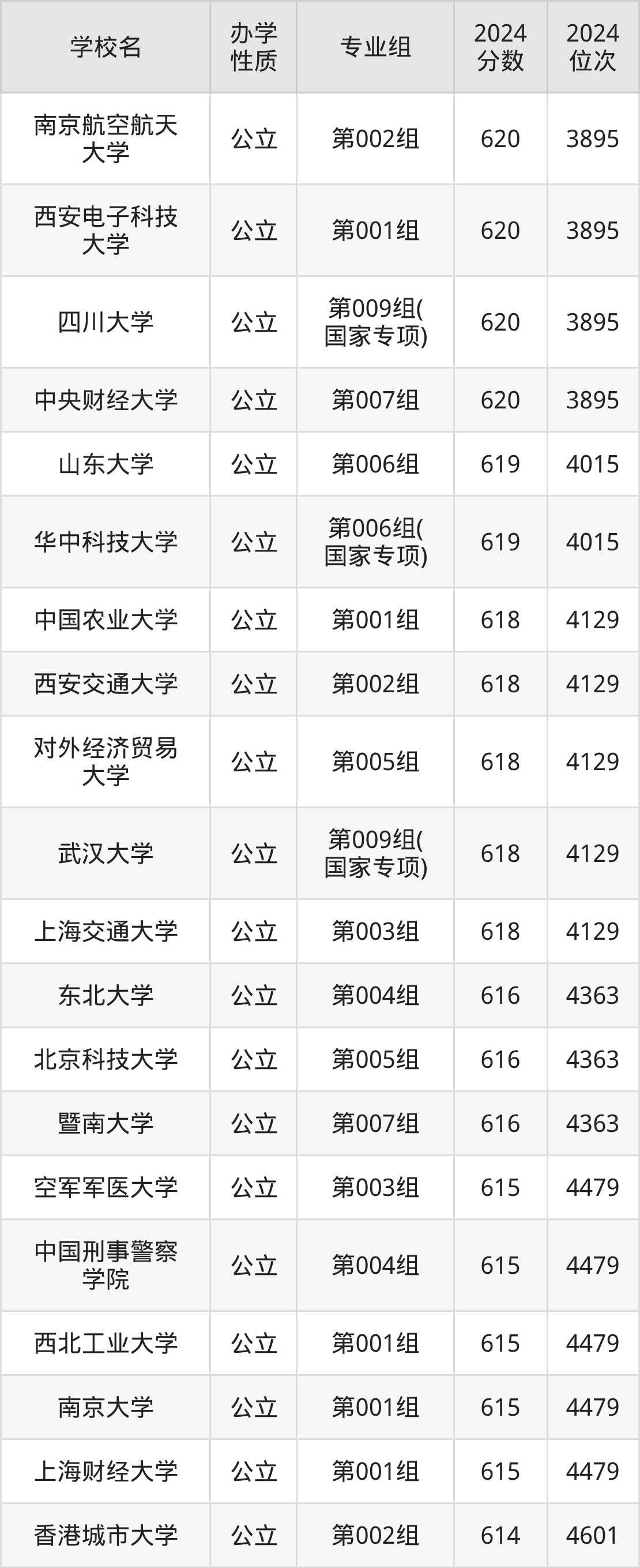 | 学校名 | 专业组 | 2024 分数 | 2024 位次 |