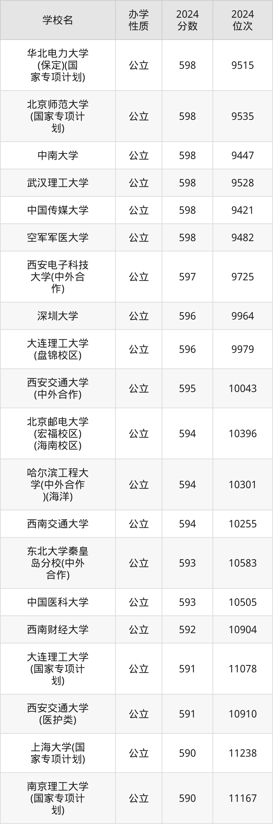 根据2024年陕西的录取数据来看,593分的考生可以上中南大学、中央民族大学、重庆大学等985大学,不过理科和文科的院校名单有所不同,本文就分科类整理出陕西593分能上的985大学名单。
