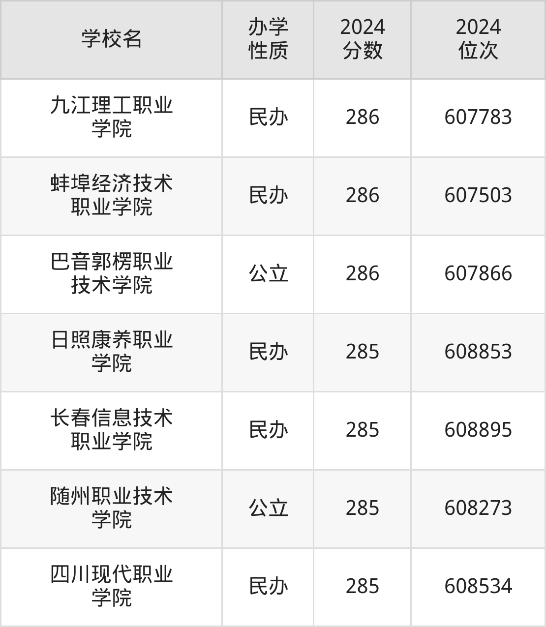 | 长春信息技术 职业学院 | 285 | 608895 |