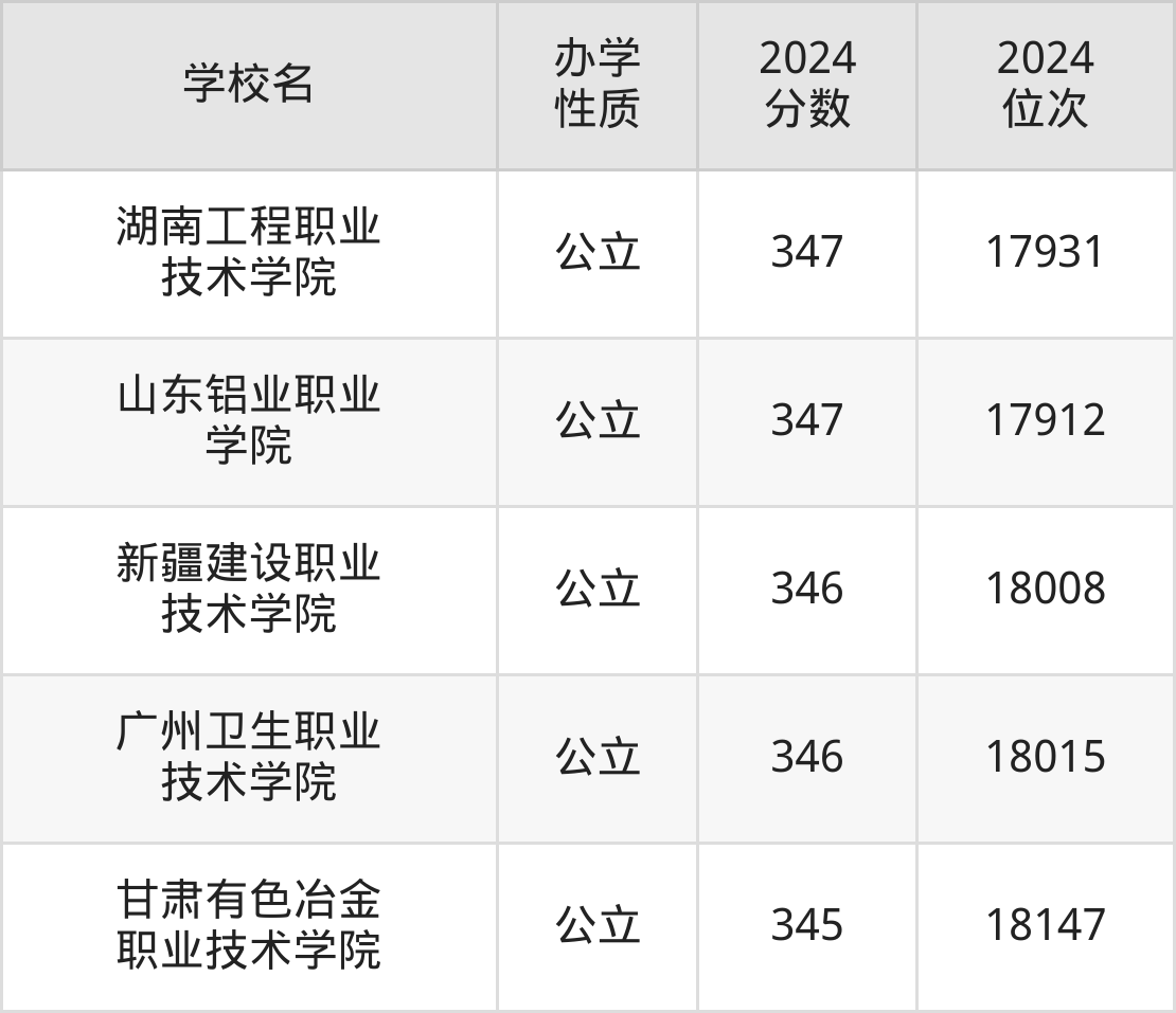 | 甘肃有色冶金 职业技术学院 | 345 | 18147 |