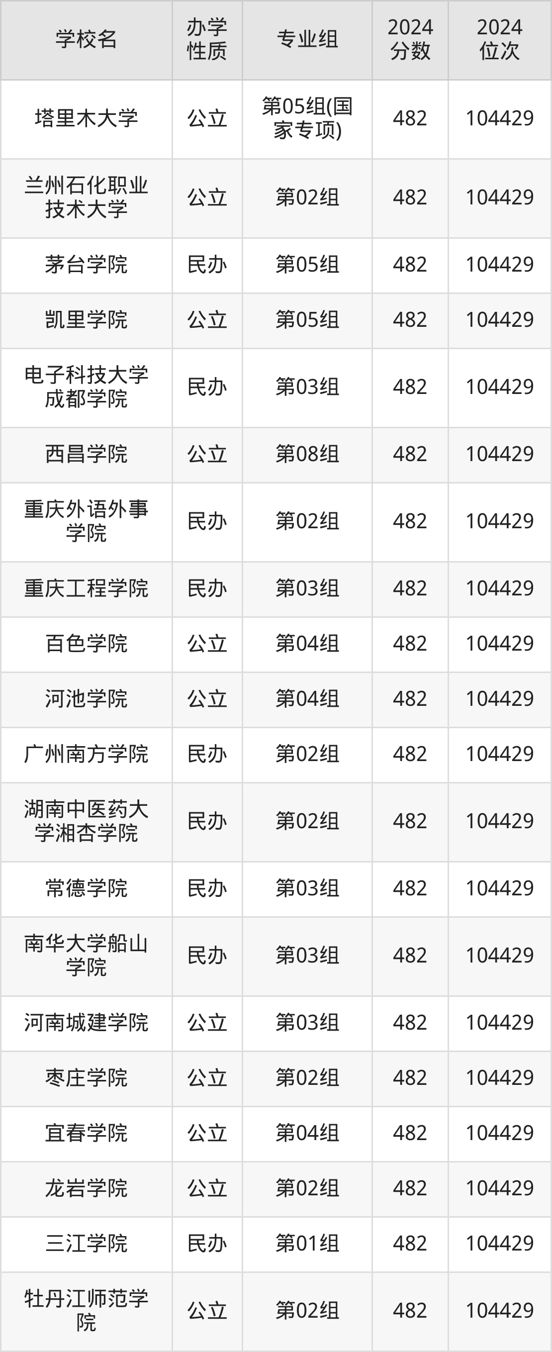 | 学校名 | 专业组 | 2024 分数 | 2024 位次 |