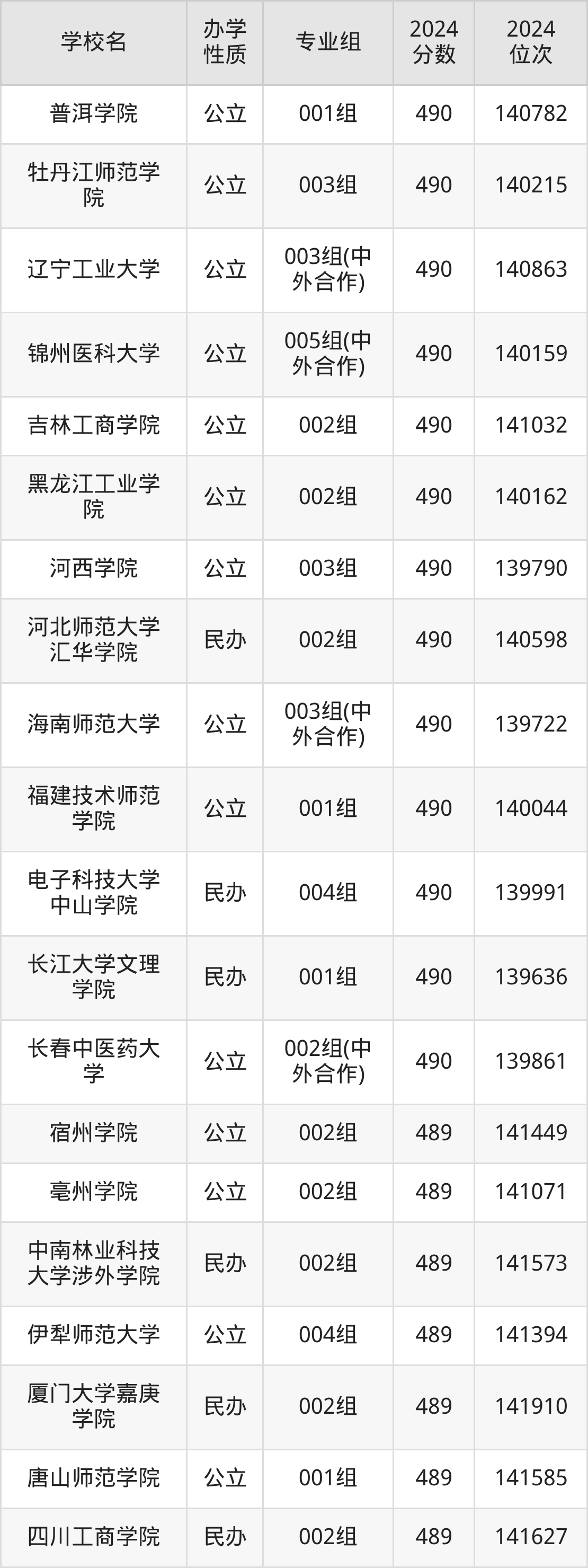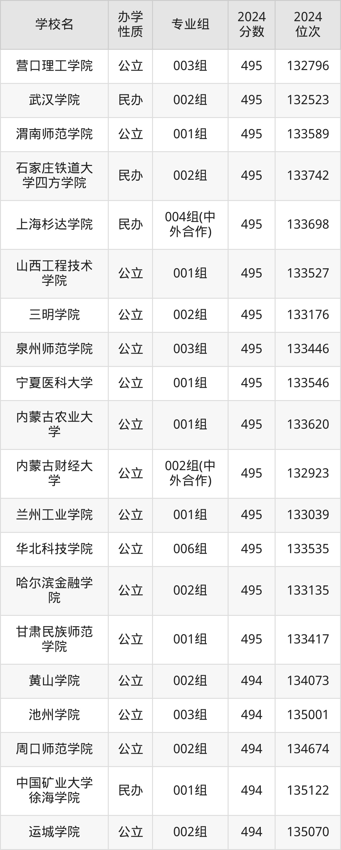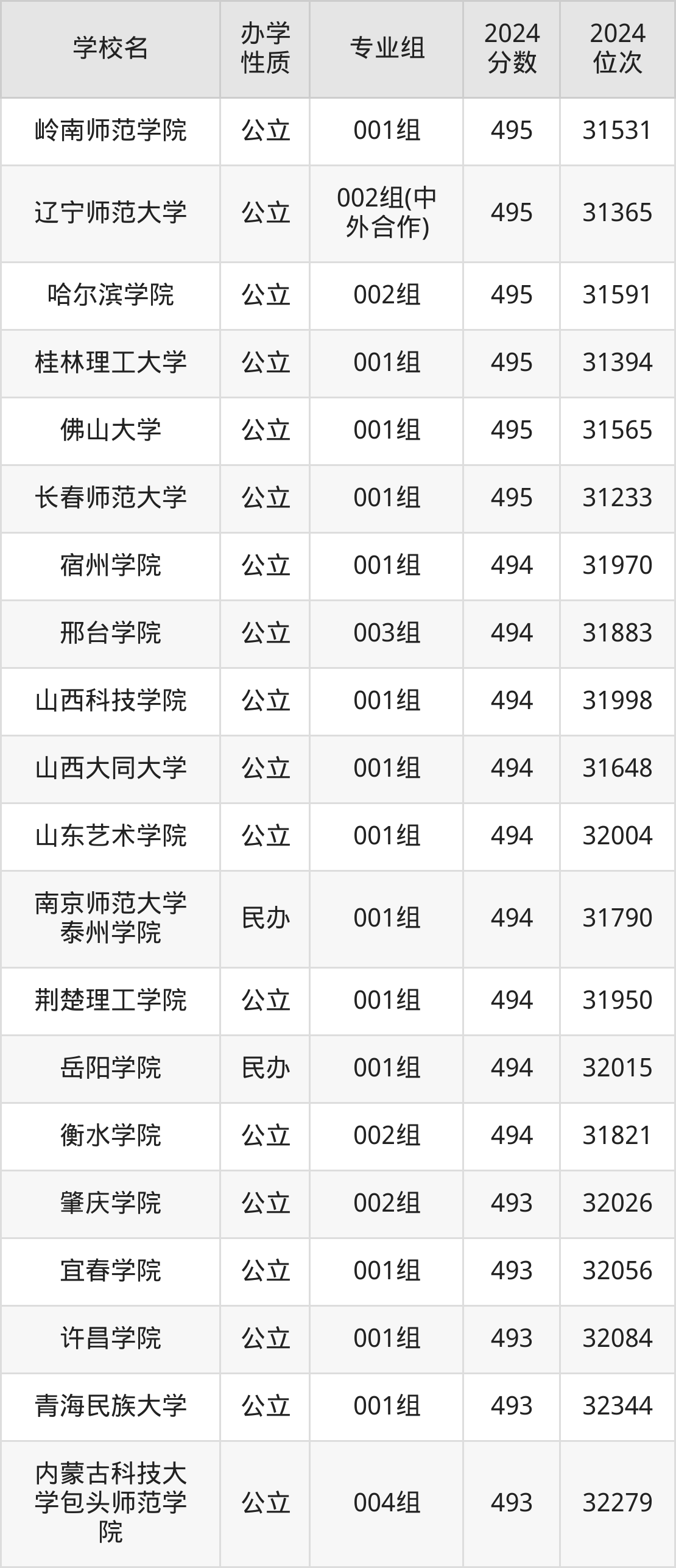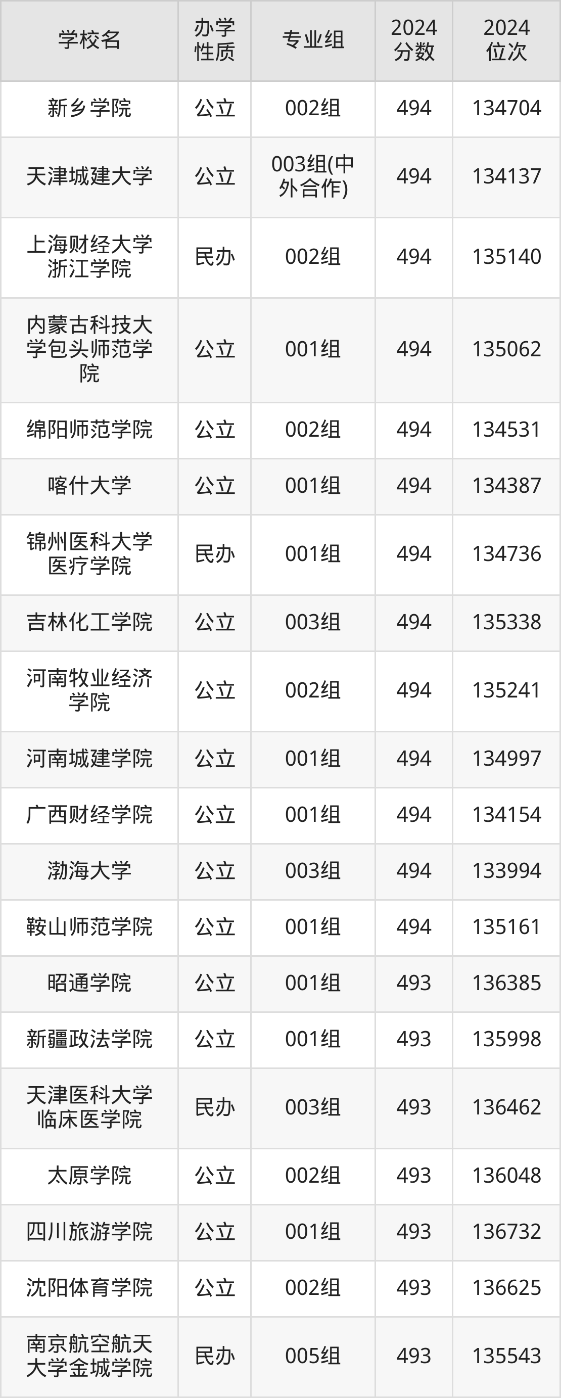 | 学校名 | 专业组 | 2024 分数 | 2024 位次 |