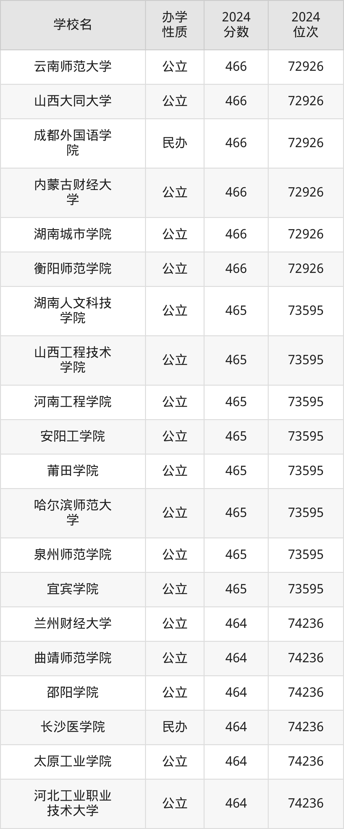 | 哈尔滨师范大 学 | 465 | 73595 |