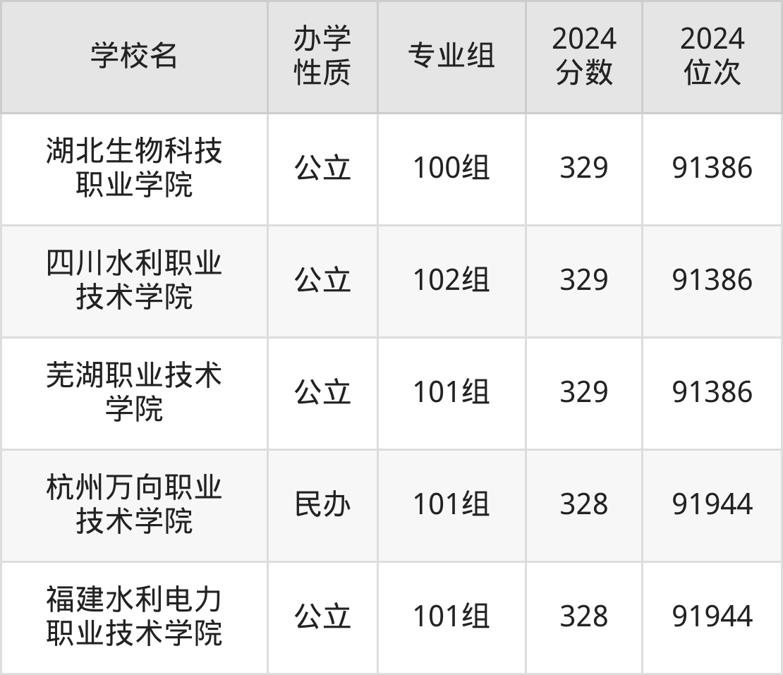| 福建水利电力 职业技术学院 | 101组 | 328 | 91944 |