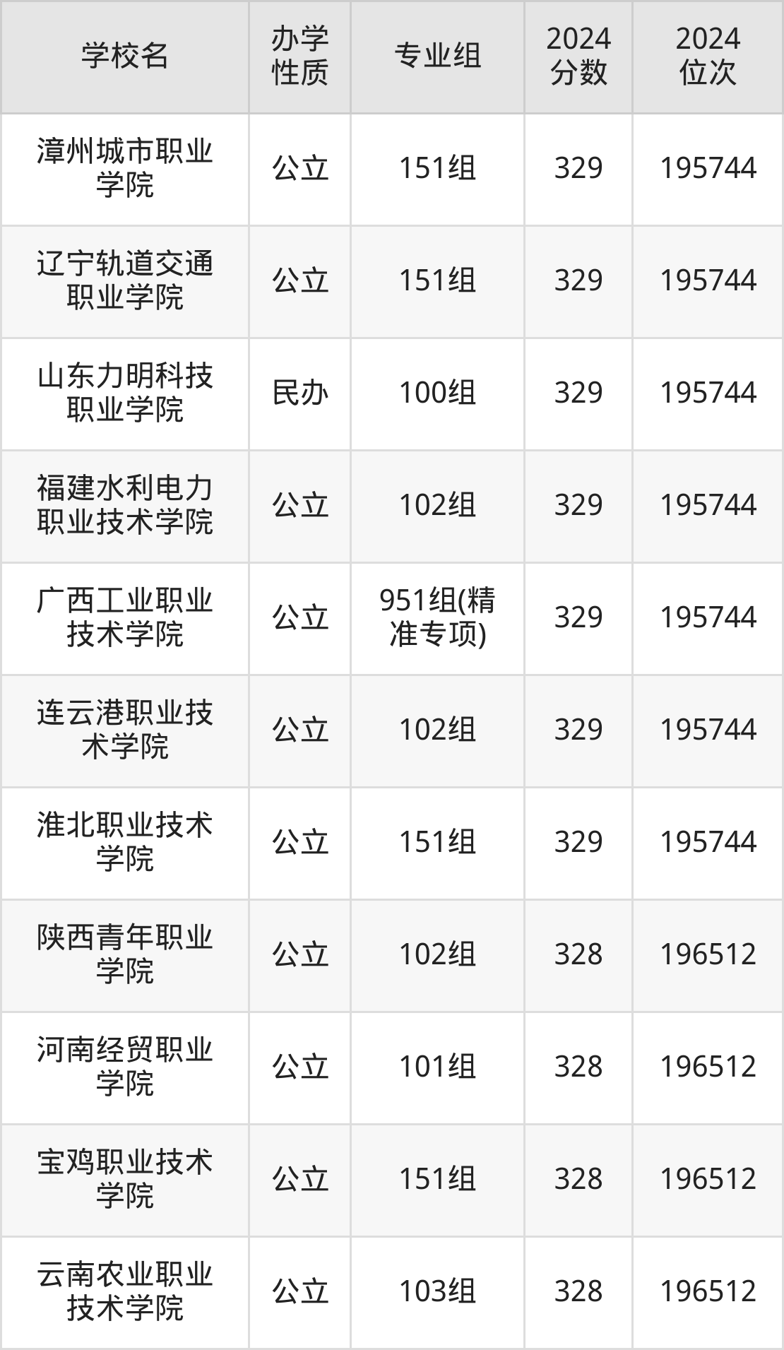 | 辽宁轨道交通 职业学院 | 151组 | 329 | 195744 |