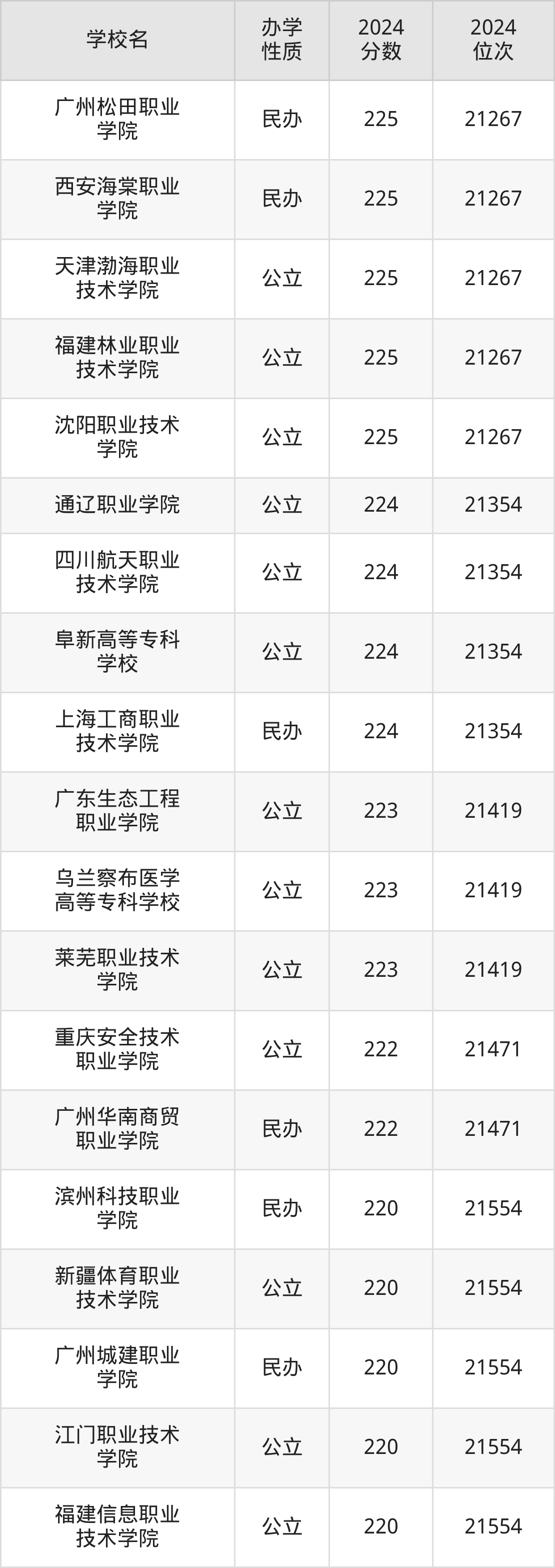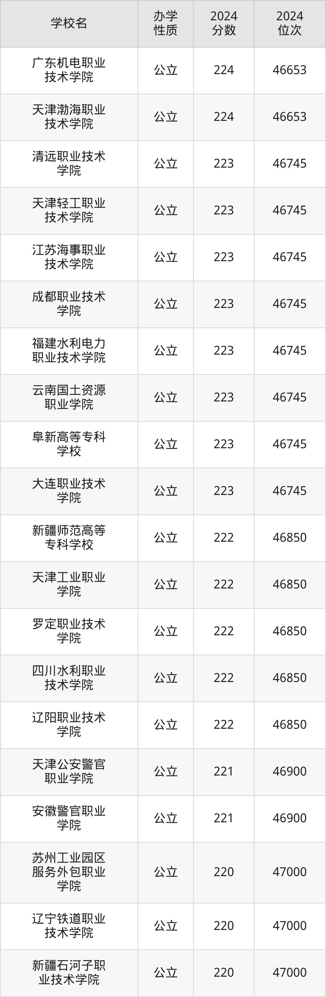 | 福建水利电力 职业技术学院 | 223 | 46745 |