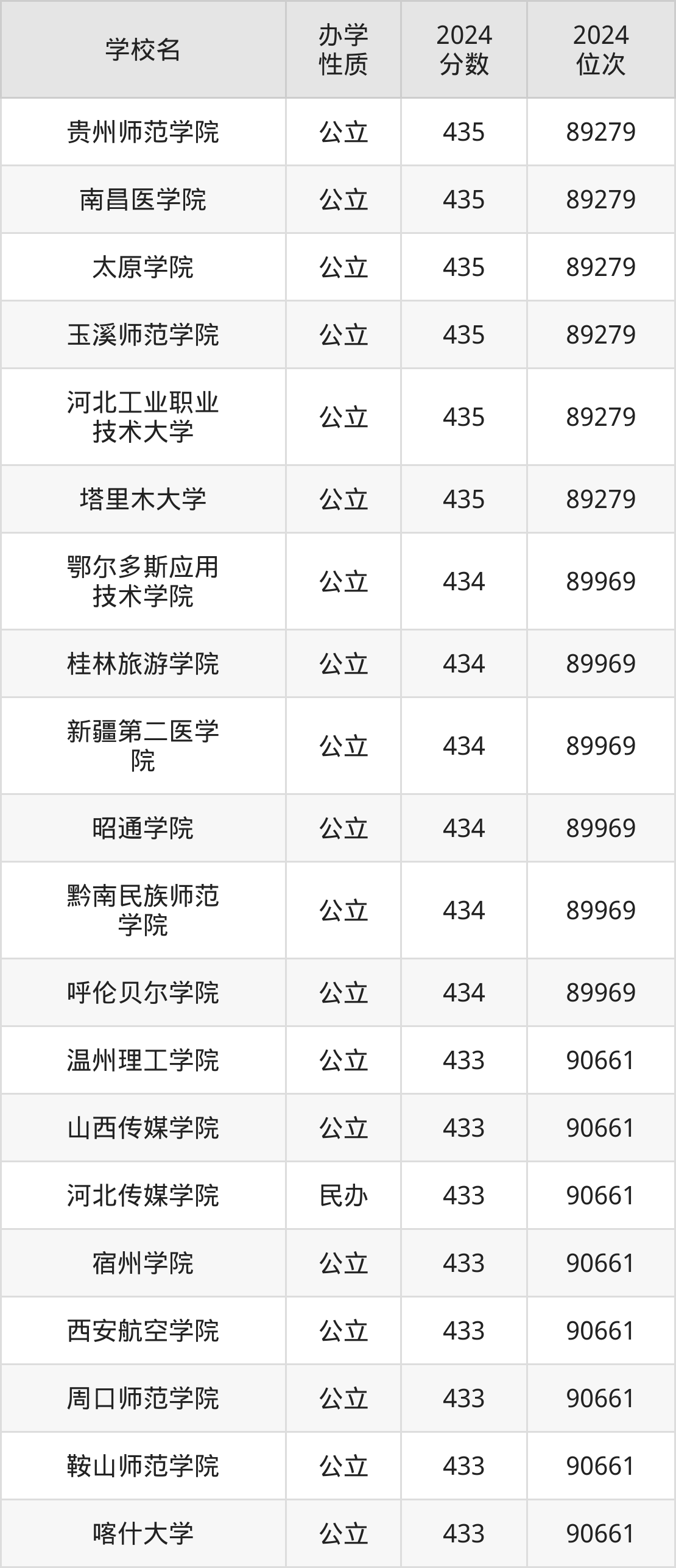| 河北传媒学院 | 433 | 90661 |