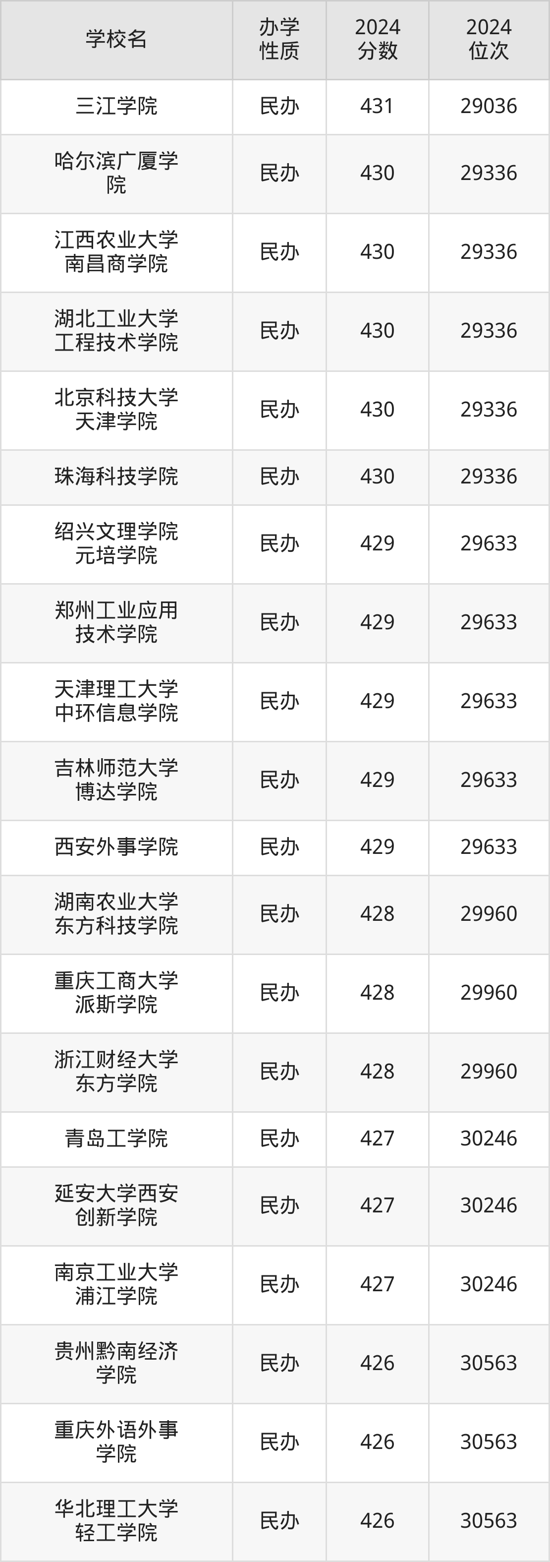 | 三江学院 | 431 | 29036 |