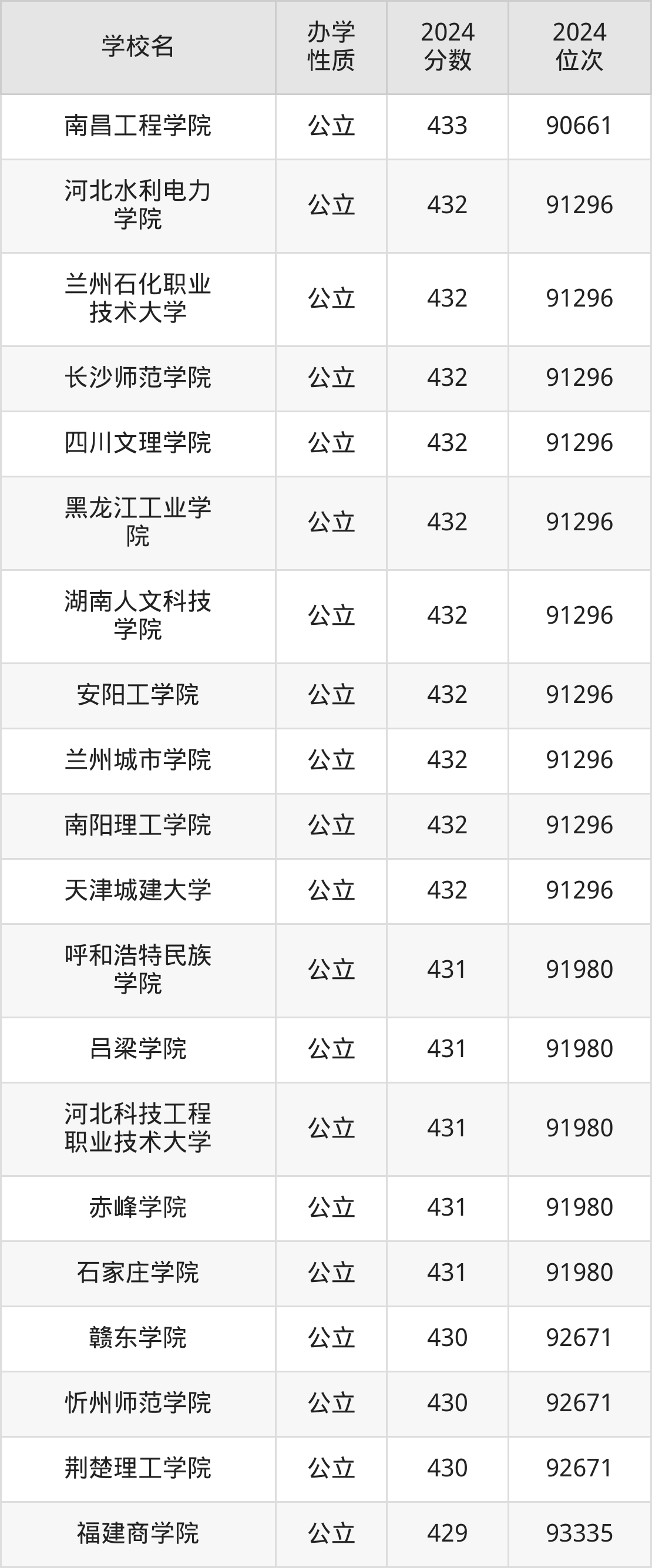 | 南昌工程学院 | 433 | 90661 |