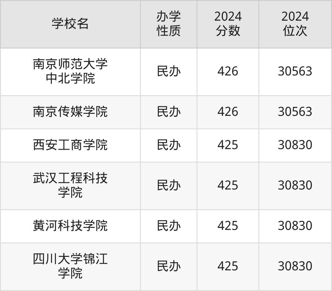 | 西安工商学院 | 425 | 30830 |