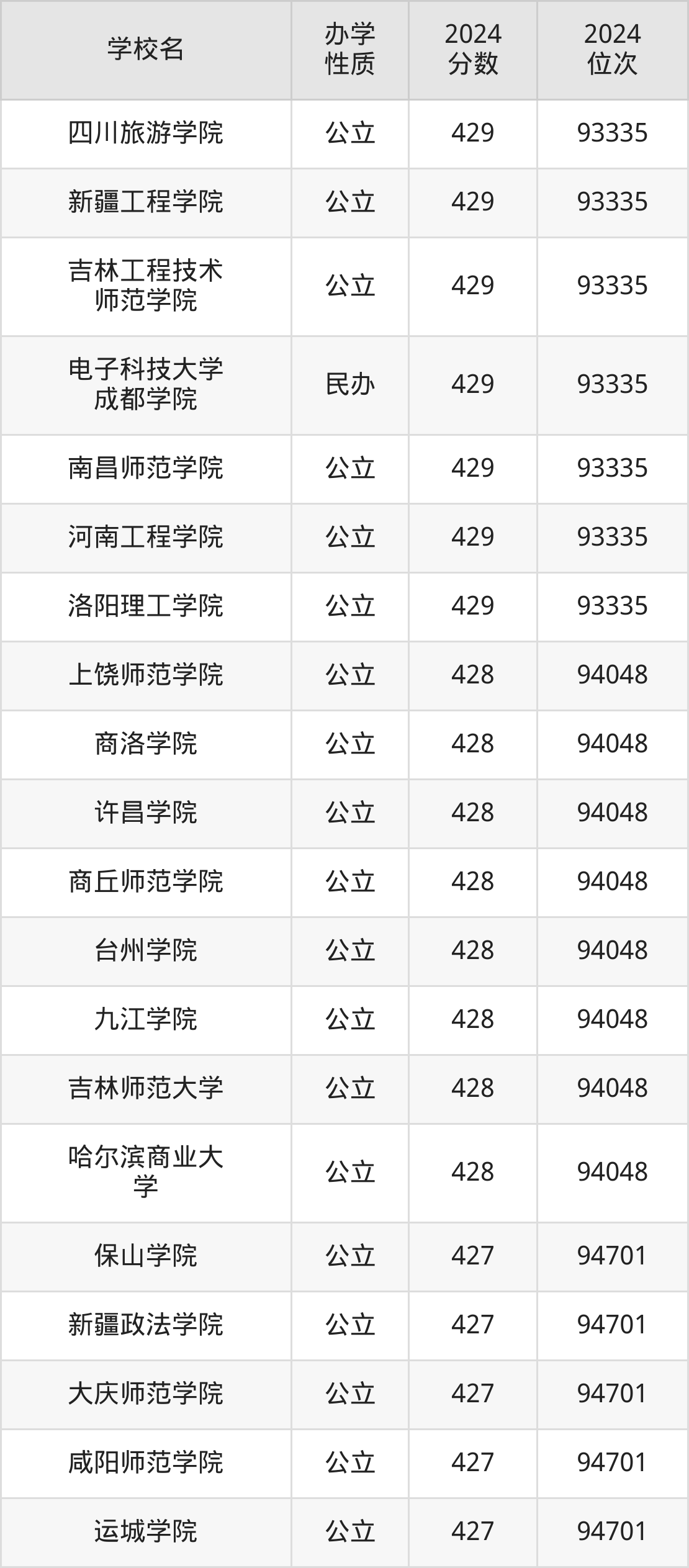 | 商洛学院 | 428 | 94048 |