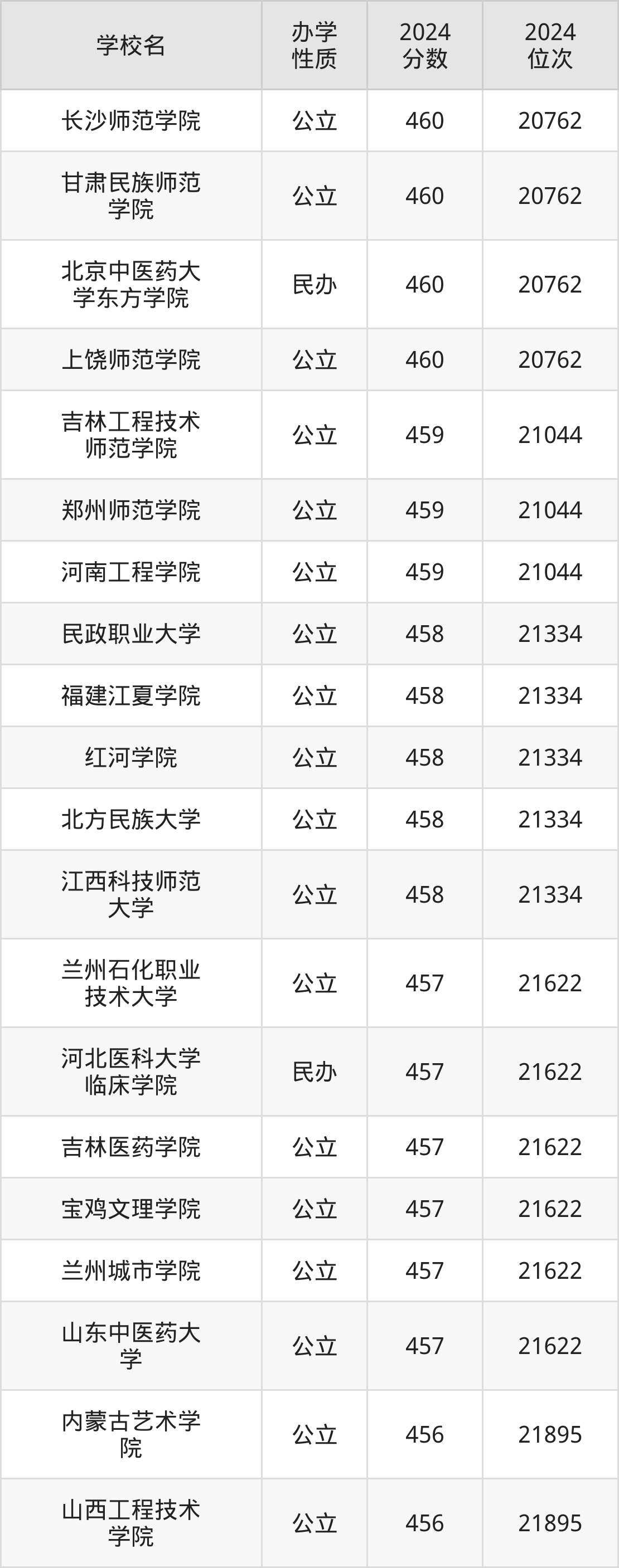 | 长沙医学院 | 456 | 21895 |