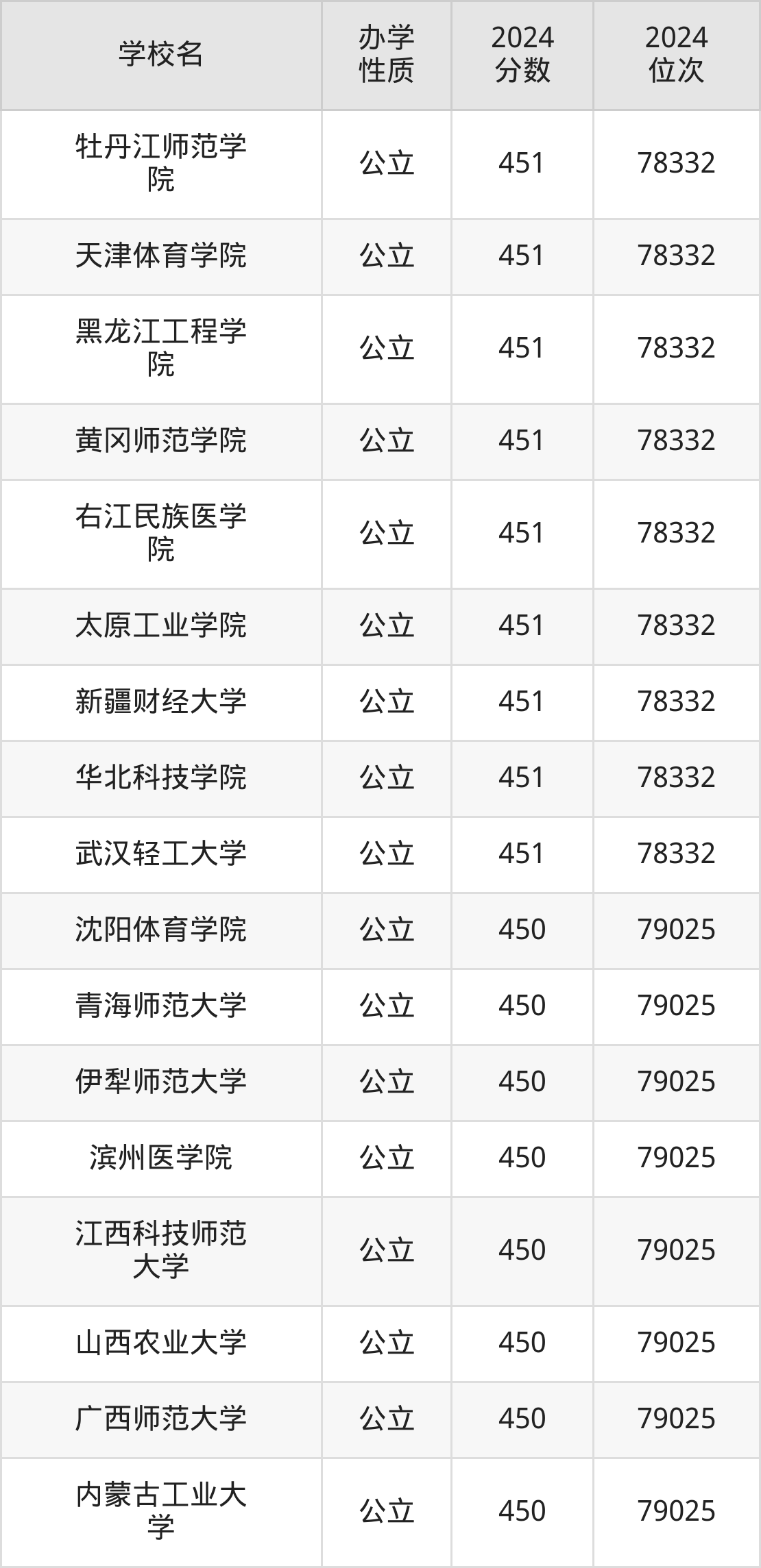 | 沈阳体育学院 | 450 | 79025 |