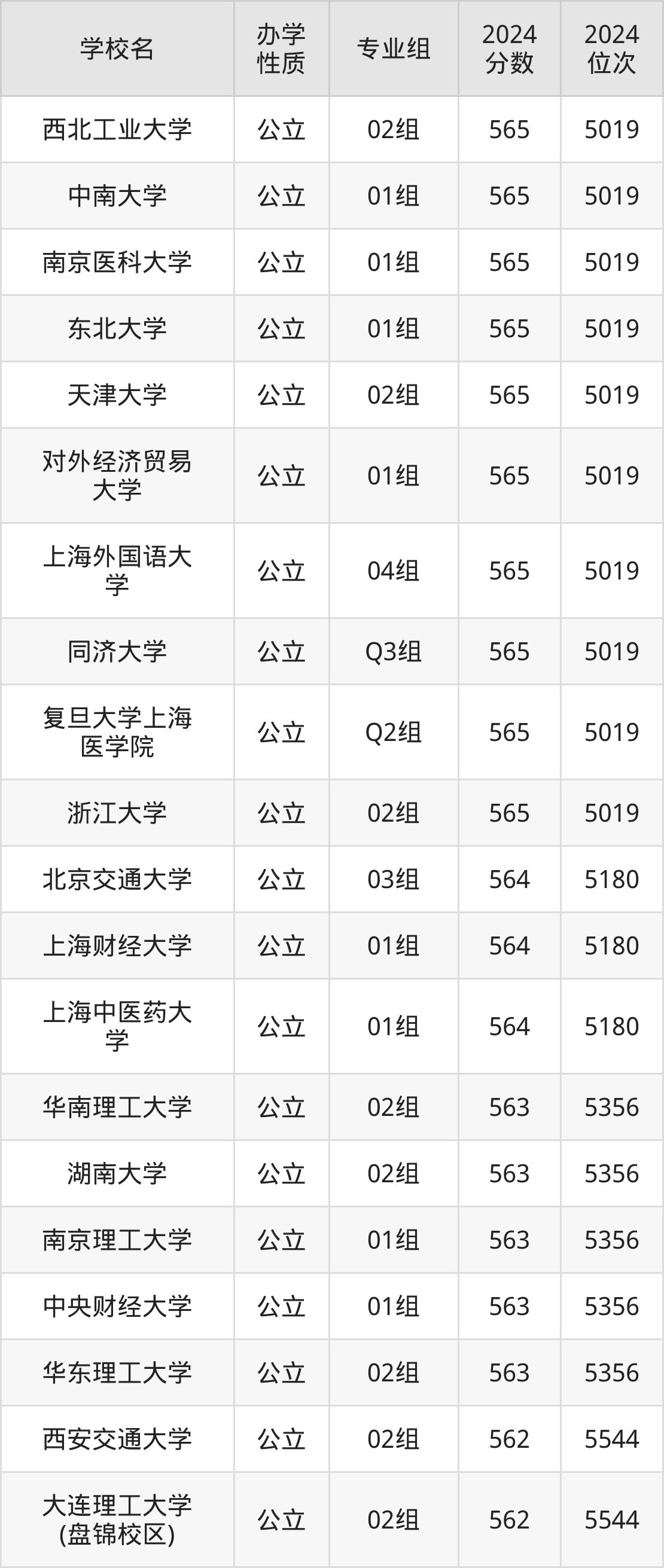 | 学校名 | 专业组 | 2024 分数 | 2024 位次 |