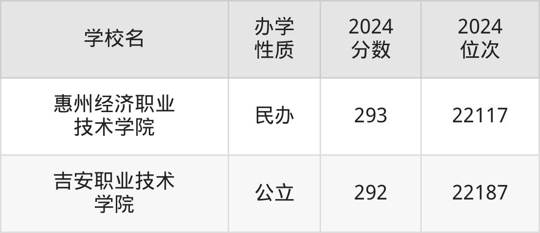 | 惠州经济职业 技术学院 | 293 | 22117 |