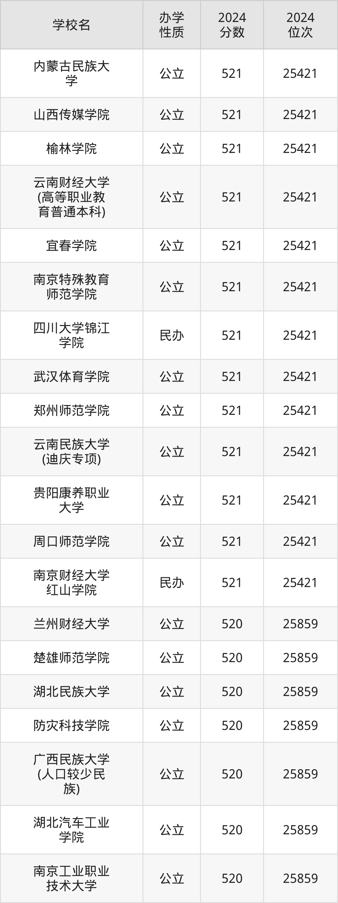 为了方便2025届考生了解自己能上哪些大学,本文也整理出了云南516分左右能上的所有大学名单,供2025年考生参考。