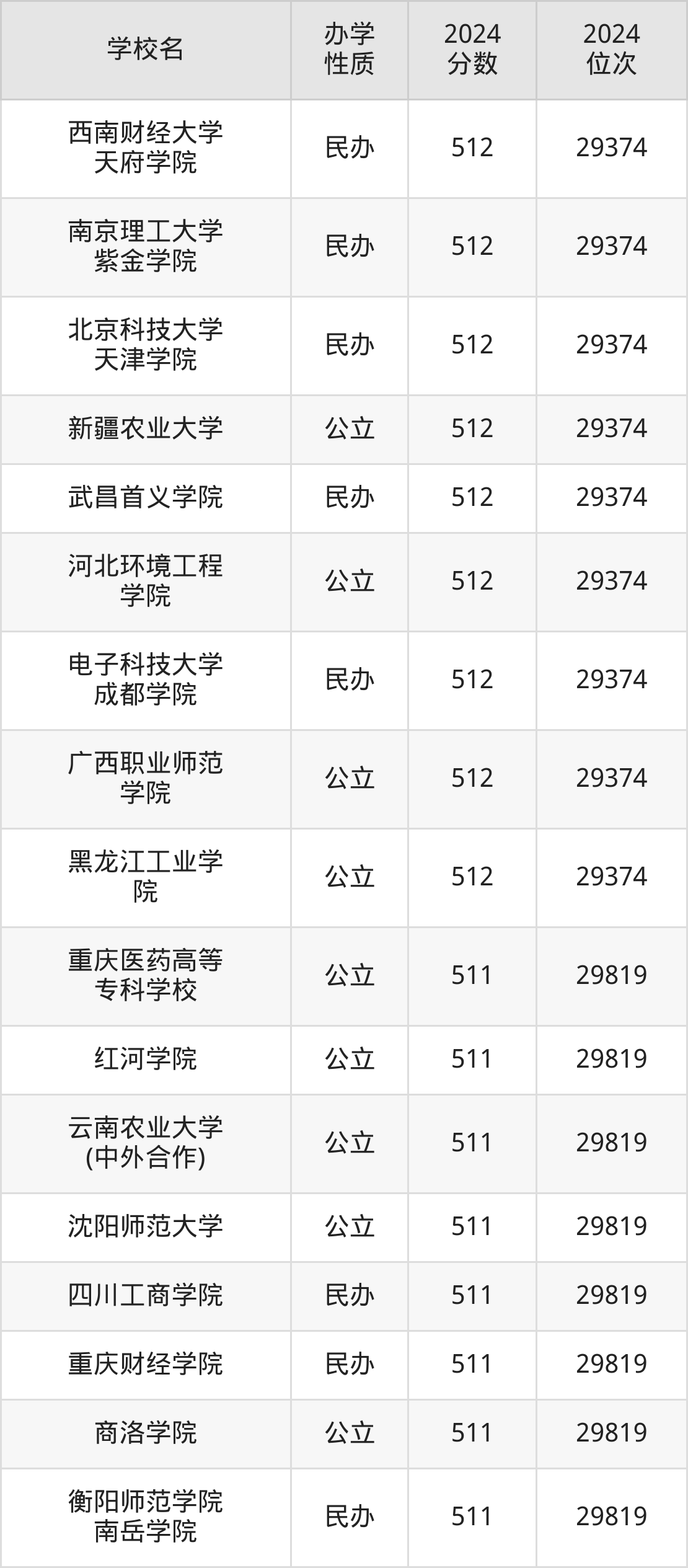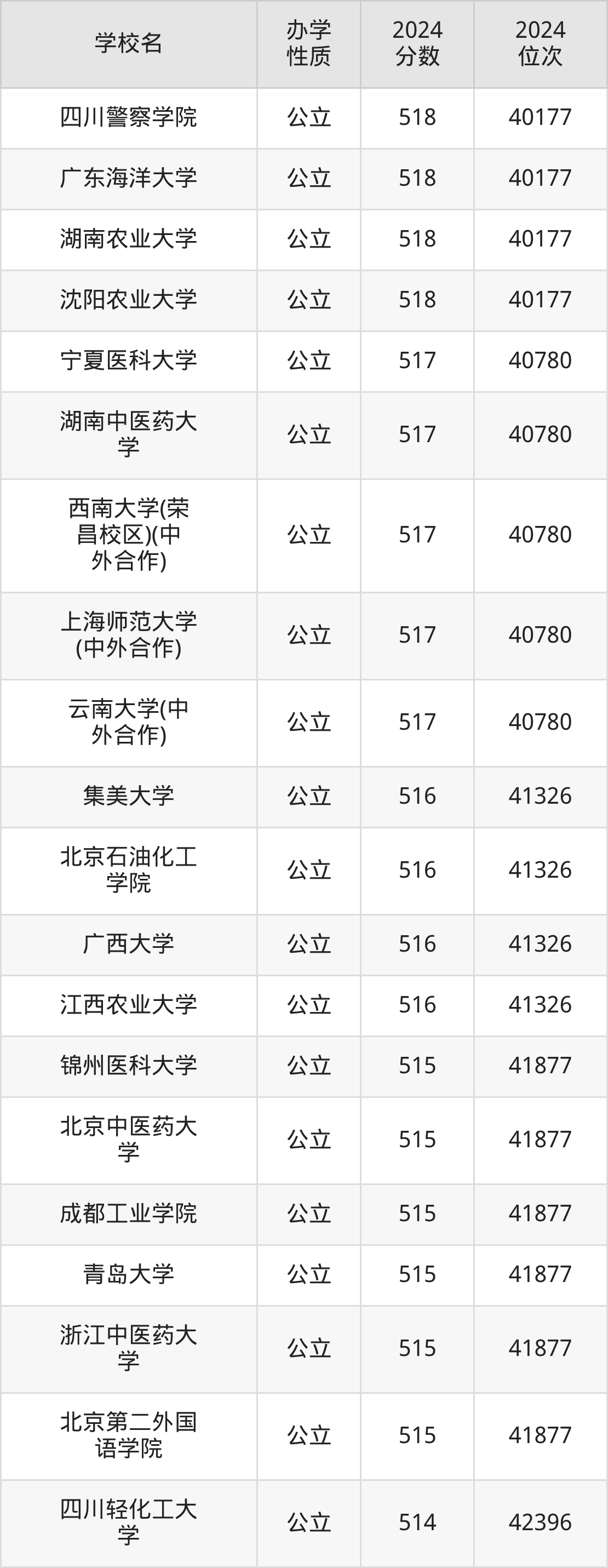 | 西南大学(荣 昌校区)(中 外合作) | 517 | 40780 |