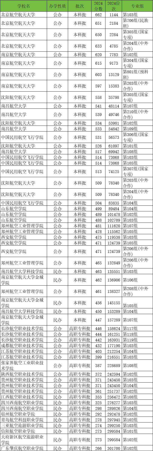 二、2024年航天航空大学录取分数线