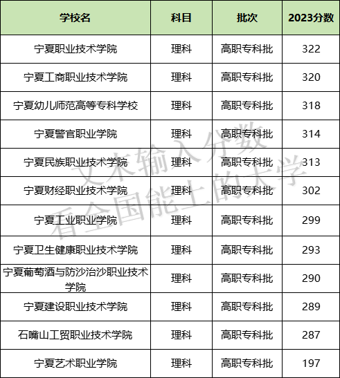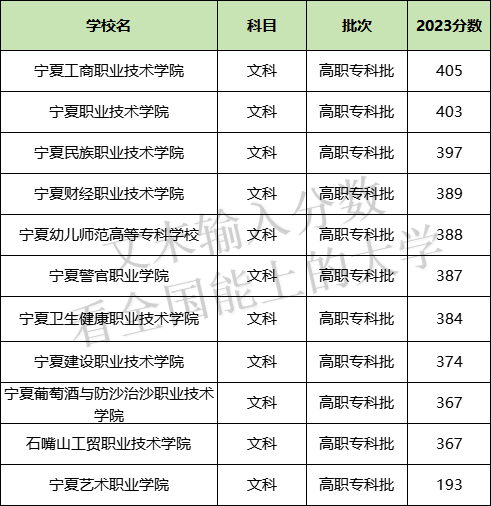 理科最好考、收分最低的是宁夏艺术职业学院,2023最低分文科是193分,对应位次24736;理科是197分,对应位次45008。