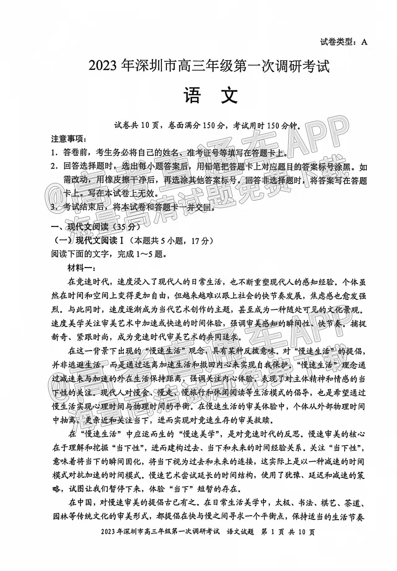深圳一模2023语文考试是很多考生都在关注的,大家应该都非常想要知道深圳一模2023语文科目试题答案,高考100网小编就为大家带来深圳一模2023语文参考答案及试卷汇总。