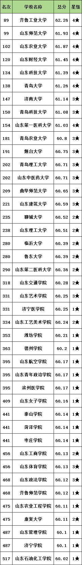 第一名:齐鲁工业大学,全国第89名;