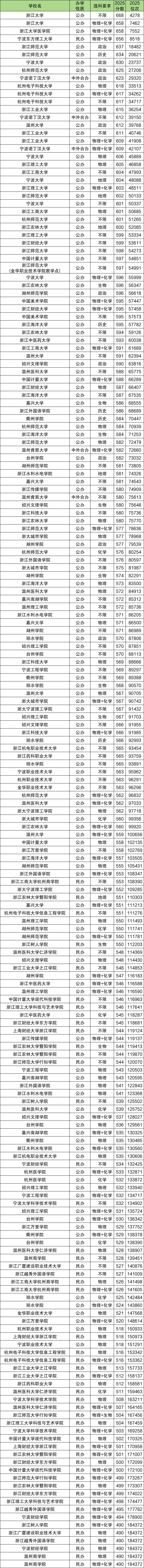 2025年浙江本科各大学最低录取分数线为:一段490分到668分、二段477分到565分。浙江公办本科院校排名前三分别是:第一名浙江大学(全国第3位)、第二名浙江工业大学(全国第62位)、第三名宁波大学(全国第78位)。