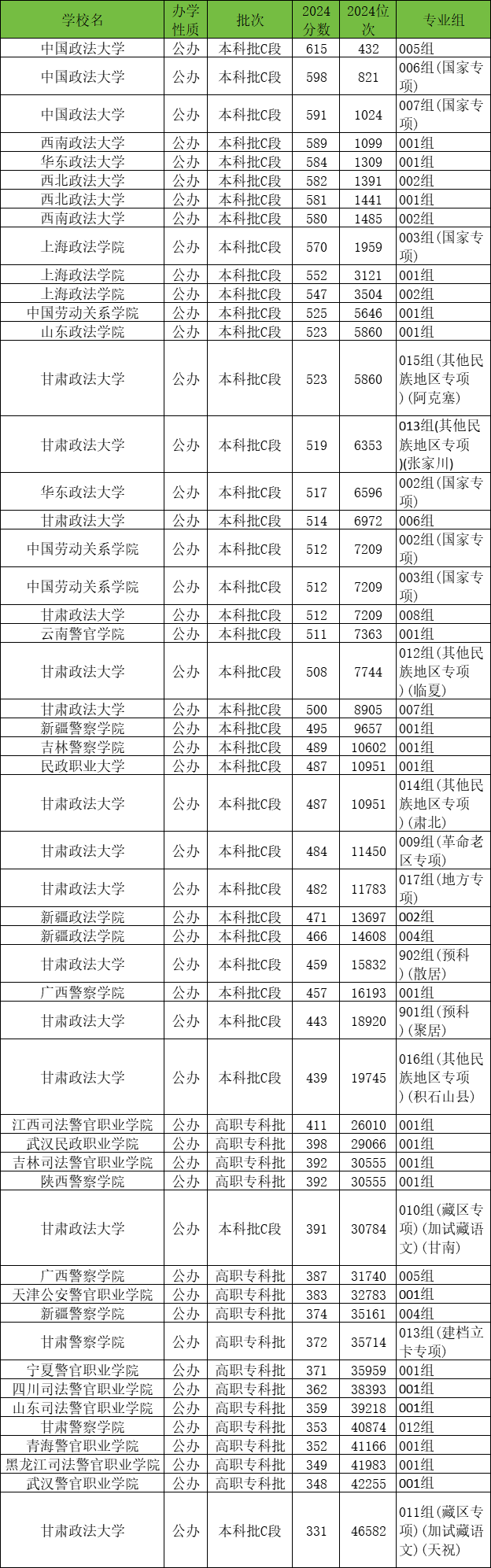 2024年政法大学历史类最低录取分数线是331分,对应的学校为甘肃政法大学,专业为:法学。