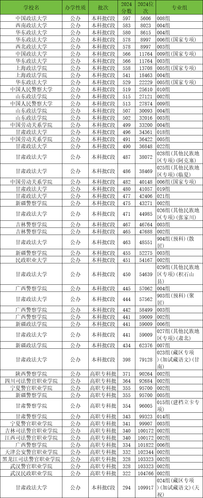 2024年政法大学物理类最低录取分数线是294分,对应的学校为甘肃政法大学,专业为:法学。