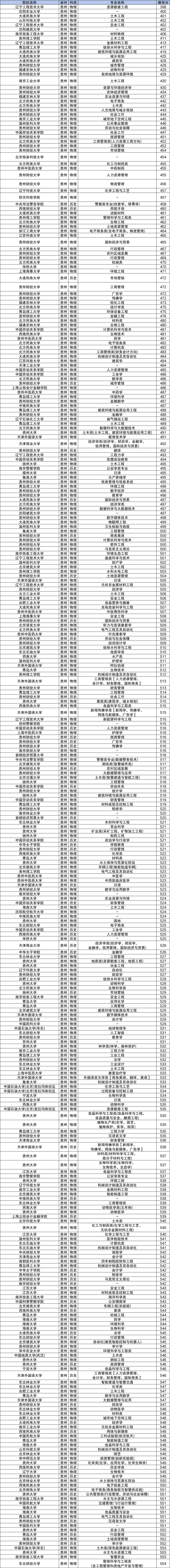 下面是2024年贵州国家专项计划录取分数线一览表(滑动查看):