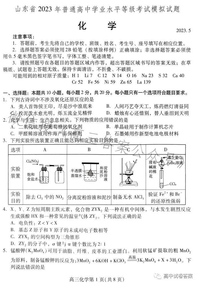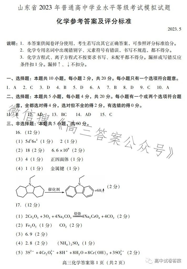 潍坊2023高三三模是潍坊市较为重要的考试,2023潍坊三模安排在5月24日开考。关于潍坊三模2023的试题答案同学们应该很关注。本期将整理2023年潍坊三模化学真题及参考答案解析,望同学们通过这份资料,及时知晓2023潍坊高三三模的化学成绩!