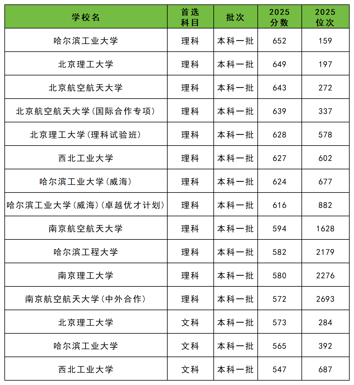 2025年新疆所有国防七子理科录取分数线最低572分,理科生最容易考上的是南京航空航天大学(中外合作);最难考上的是哈尔滨工业大学,最低652分。