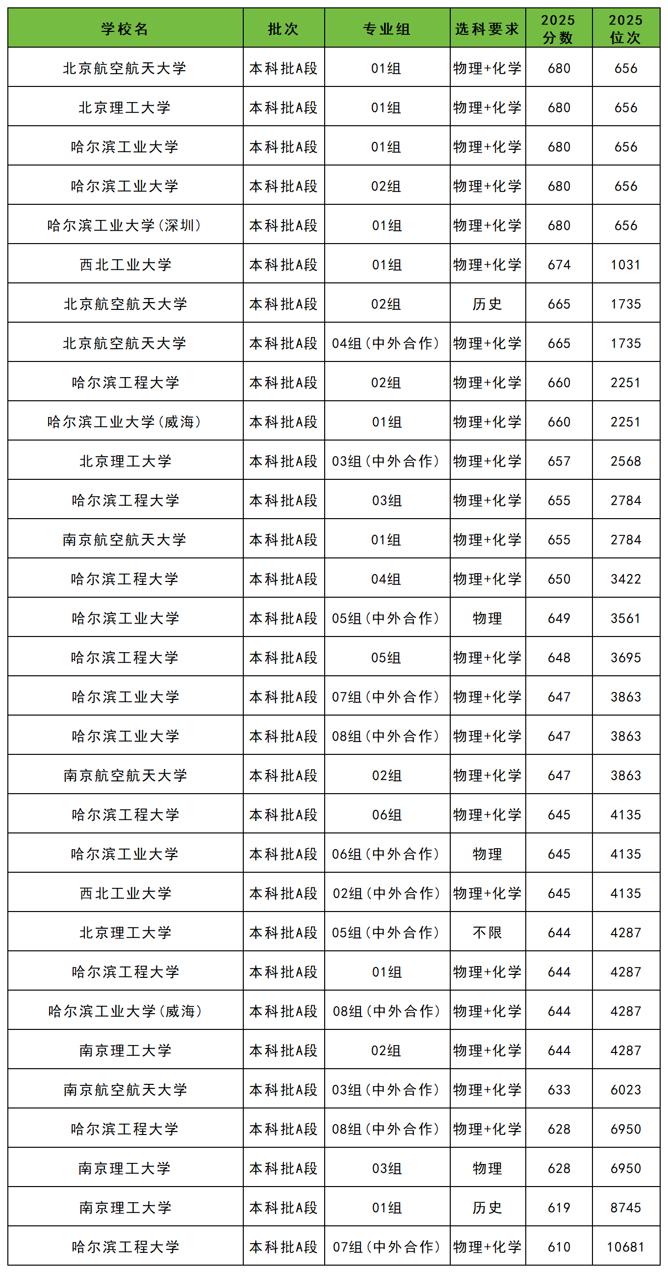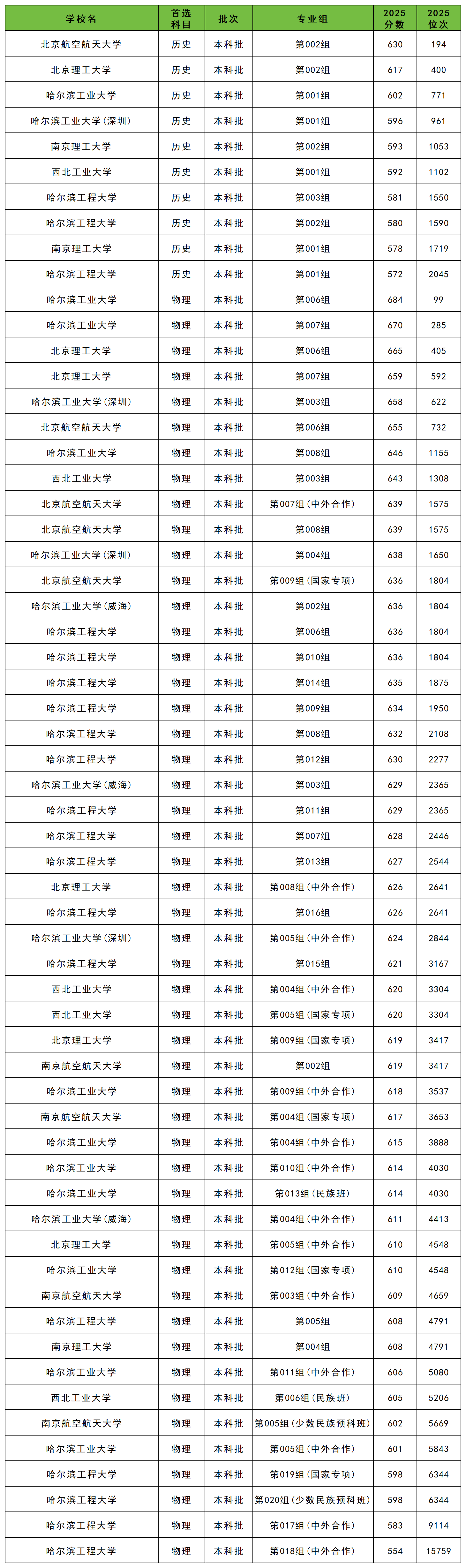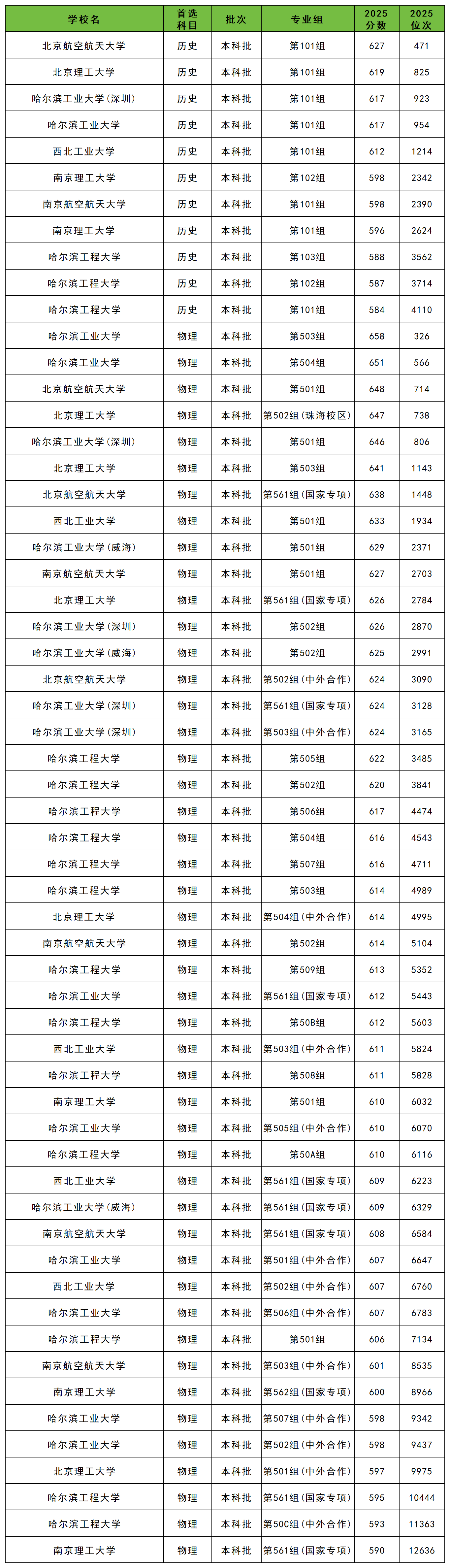 | 学校名 | 专业组 | 2025 分数 |