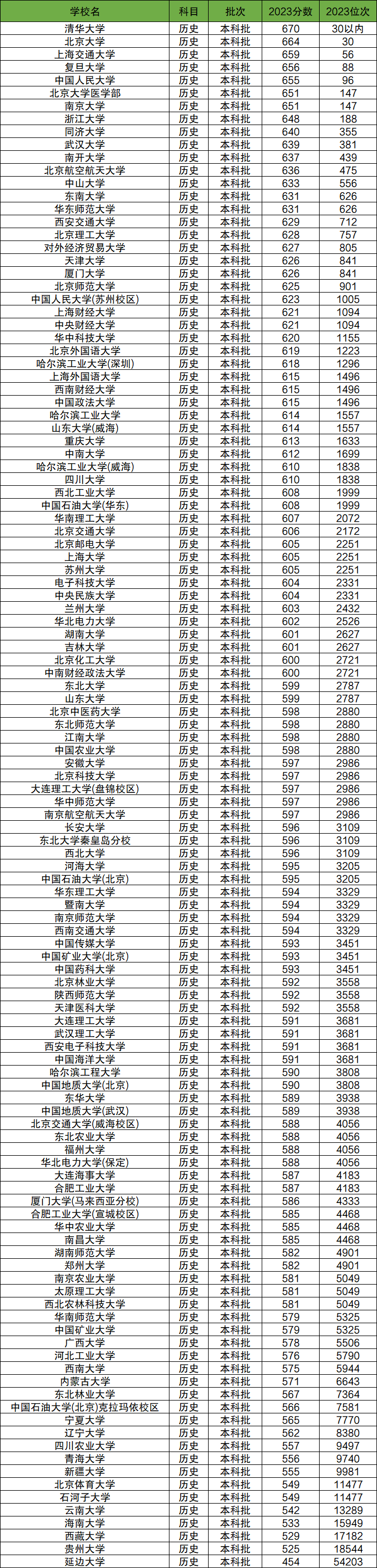 211院校在河北历史类的最低分如下表:
