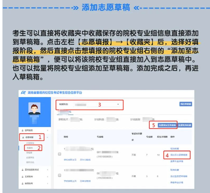 完成以上操作后,可开始进行模拟志愿填报,包括以下几个步骤: