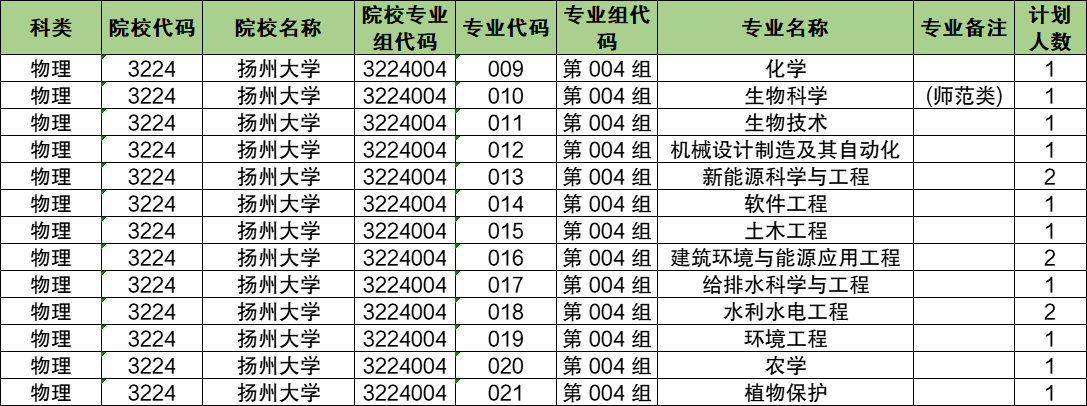 第004组:专业组代码为3224004,包含专业化学、生物科学、生物技术、机械设计制造及其自动化、新能源科学与工程、软件工程、土木工程、建筑环境与能源应用工程、给排水科学与工程、水利水电工程、环境工程、农学、植物保护。