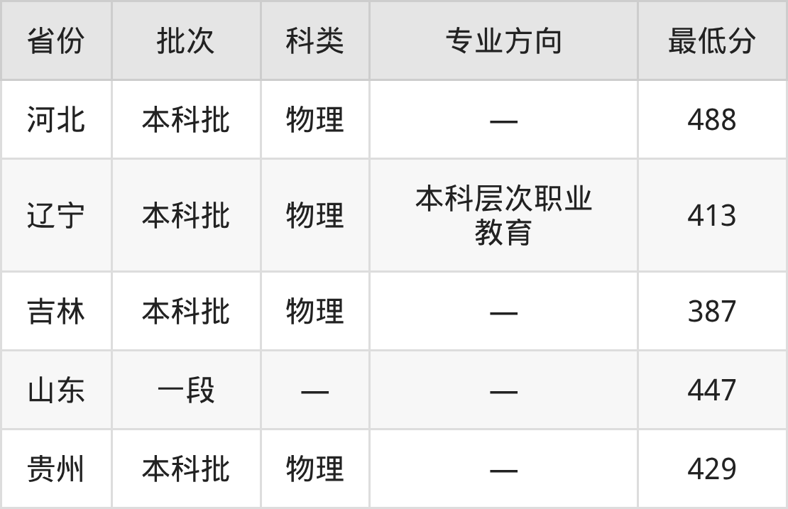 新疆天山职业技术大学云计算技术专业在全国各省最低录取分数线为387分(吉林物理类),除此之外,在其余地区的最低分为河北物理类488分、辽宁物理类413分、山东447分、贵州物理类429分,以上数据均为2025年数据,供2026年高考生参考。
