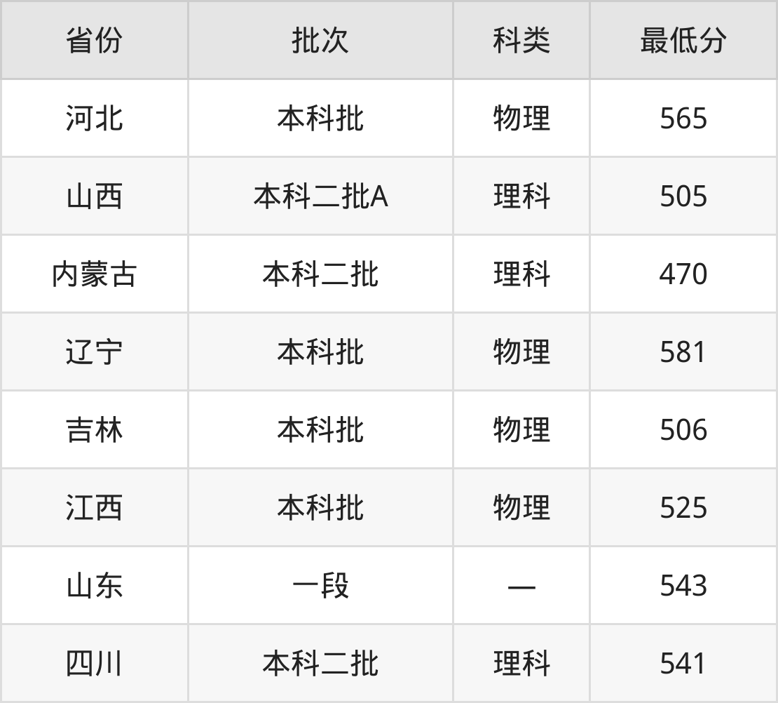 长春工业大学人工智能专业在全国各省最低录取分数线为470分(内蒙古理科),除此之外,在其余地区的最低分为河北物理类565分、山西理科505分、辽宁物理类581分、吉林物理类506分等,以上数据均为2024年数据,供2025年高考生参考。