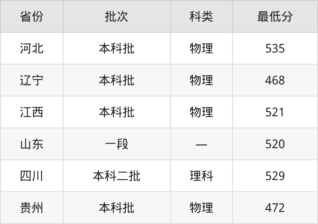 辽宁工业大学工程管理专业在全国各省最低录取分数线为468分(辽宁物理类),除此之外,在其余地区的最低分为江西物理类521分、山东520分、四川理科529分、贵州物理类472分等,以上数据均为2024年数据,供2025年高考生参考。