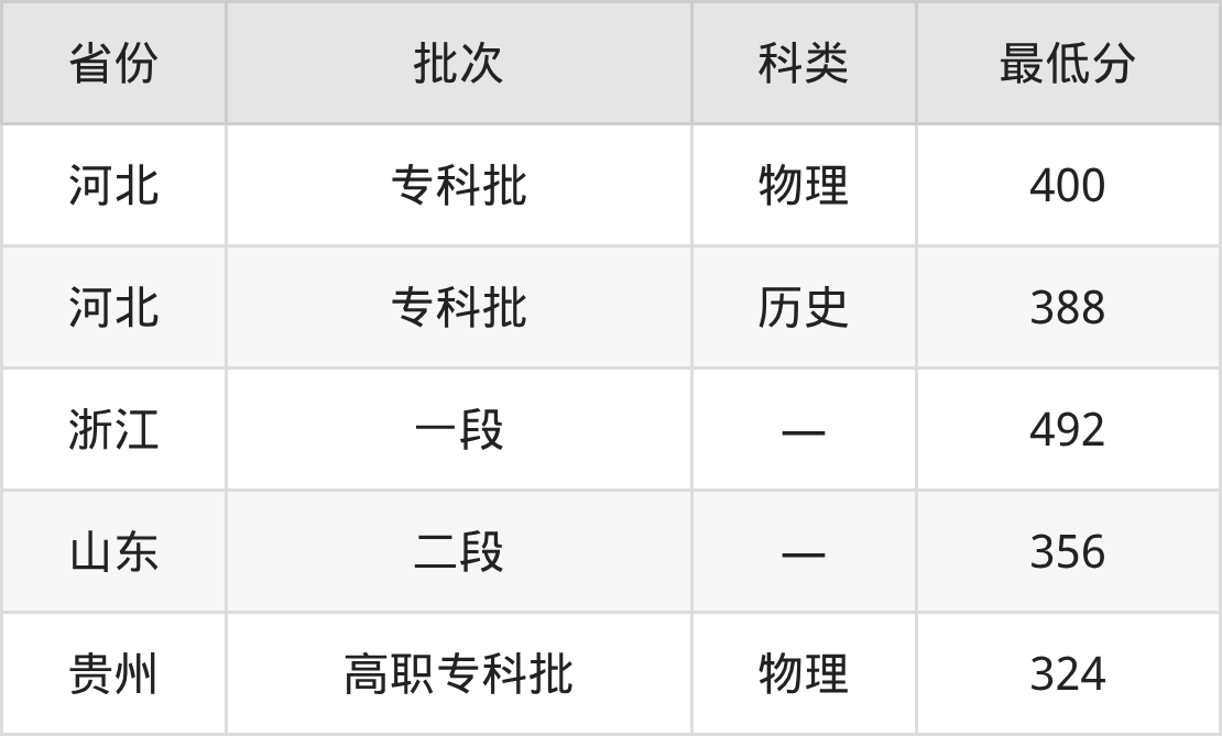 郑州医药健康职业学院医学影像技术专业在全国各省最低录取分数线为324分(贵州物理类),除此之外,在其余地区的最低分为河北历史类388分、浙江492分、山东356分,以上数据均为2025年数据,供2026年高考生参考。