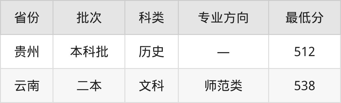 广西民族师范学院英语专业录取分数线从512分到538分不等,最低分数线如下: