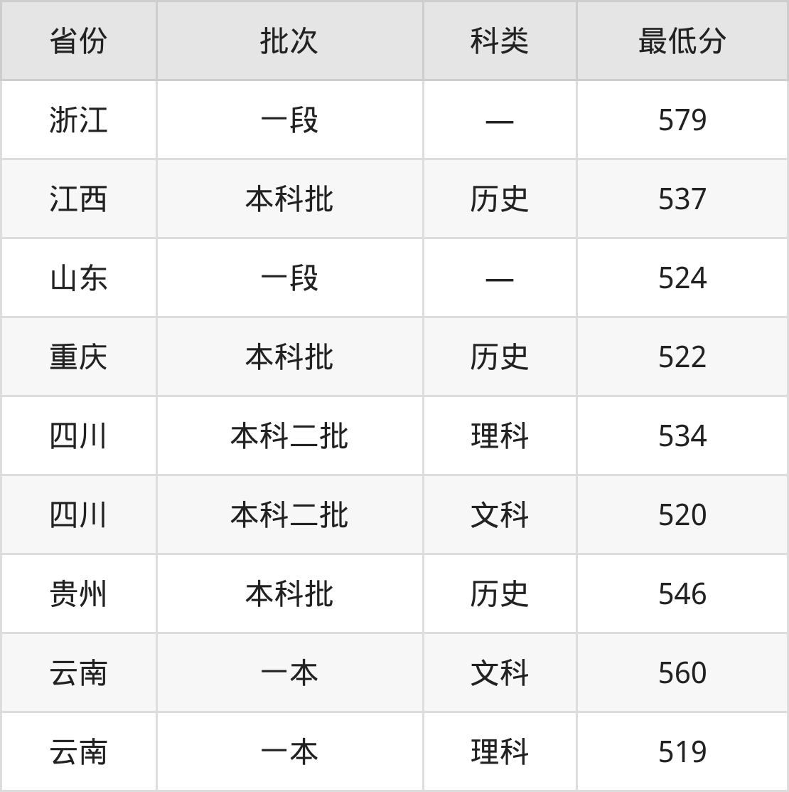 大理大学英语专业在全国各省最低录取分数线为519分(云南理科),除此之外,在其余地区的最低分为贵州历史类546分、浙江579分、江西历史类537分、山东524分等,以上数据均为2024年数据,供2025年高考生参考。