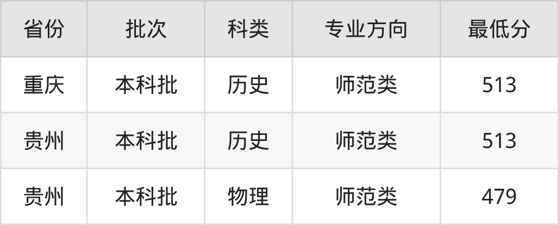 兴义民族师范学院英语专业录取分数线从479分到513分不等,最低分数线如下: