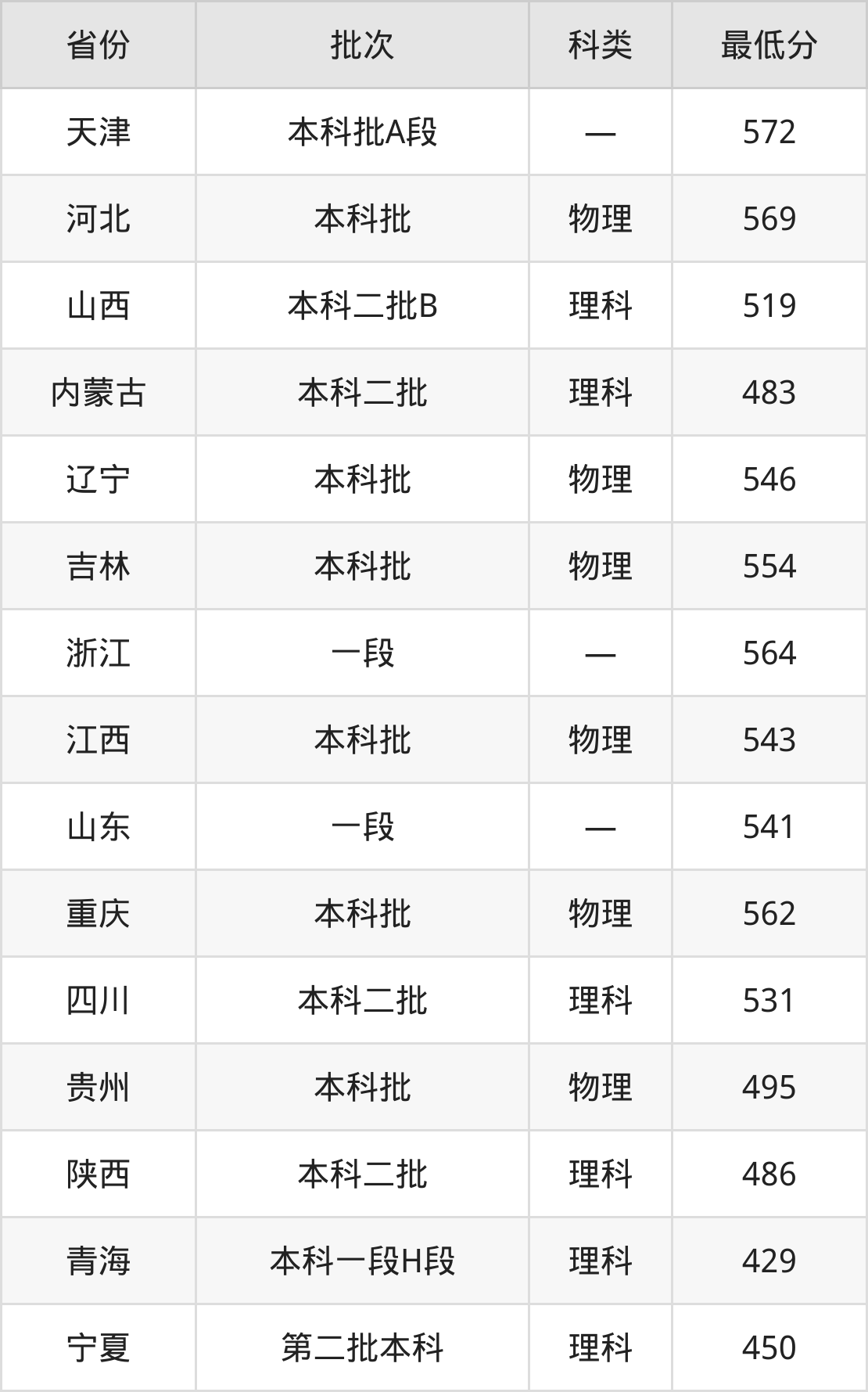 沈阳工程学院自动化专业录取分数线从429分到572分不等,在部分地区的最低分数线如下: