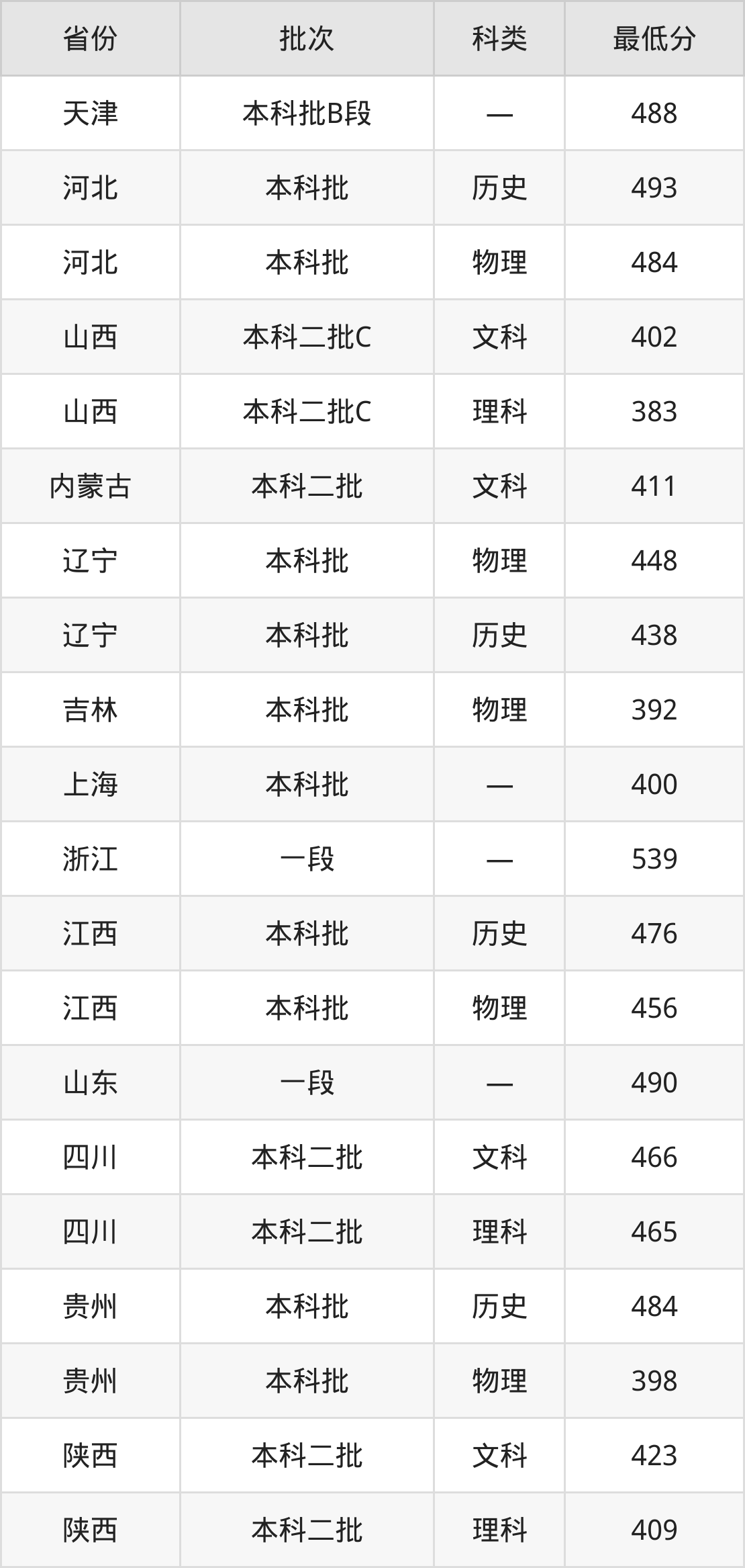 大连理工大学城市学院网络与新媒体专业录取分数线从383分到539分不等,在部分地区的最低分数线如下: