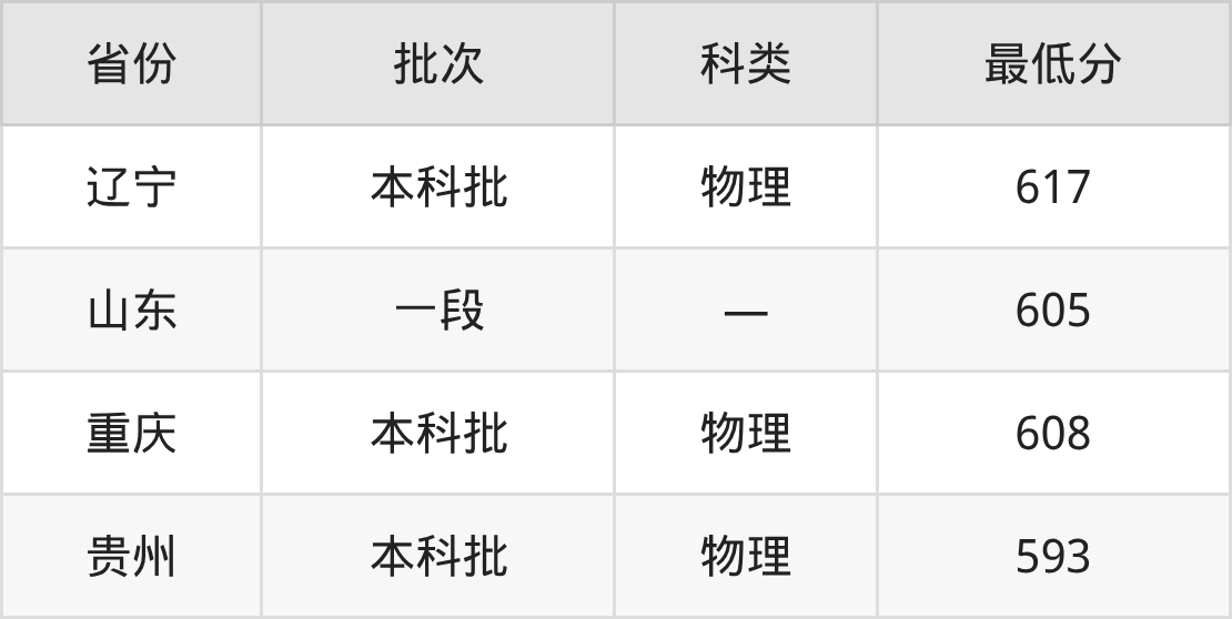 安徽大学集成电路设计与集成系统专业在全国各省最低录取分数线为593分(贵州物理类),除此之外,在其余地区的最低分为辽宁物理类617分、山东605分、重庆物理类608分,以上数据均为2025年数据,供2026年高考生参考。